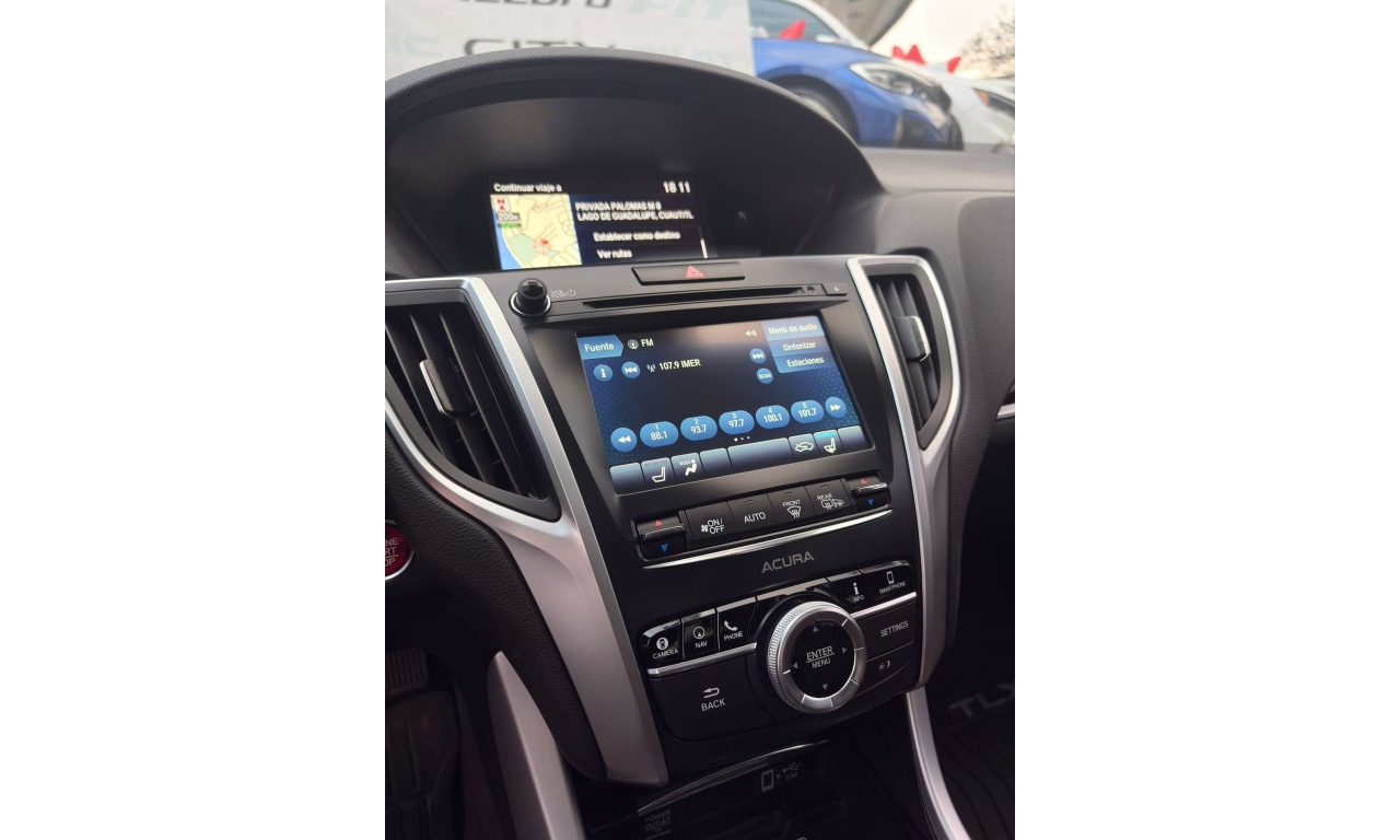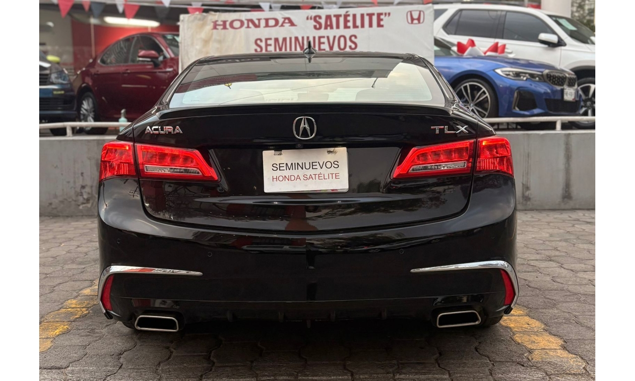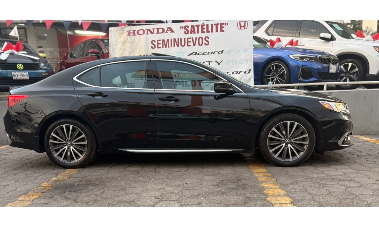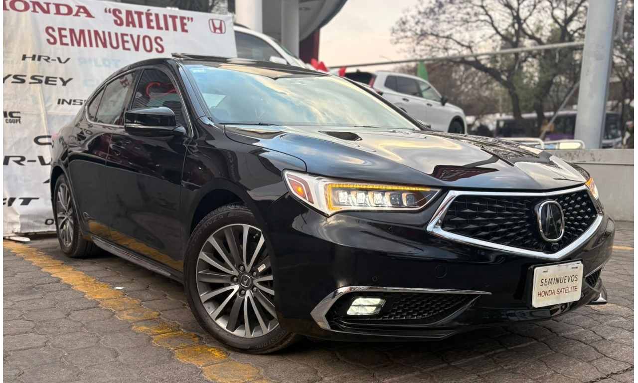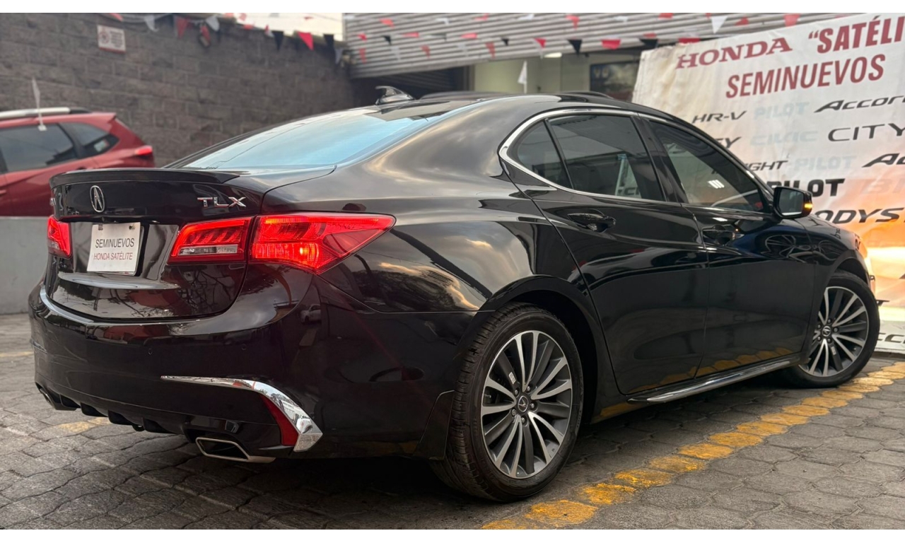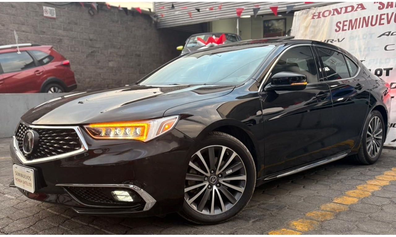 ACURA TLX 2018- color Negro Motor: 3.5 L Caballos de Fuerza: 290 Hp Es un sedán de lujo deportivo de tamaño mediano. La versión con motor 3.5 L V6 es la más potente del modelo y ofrece buen rendimiento y equipamiento premium. Transmisión: automática Asientos de piel con ajuste eléctrico Pantalla doble con sistema multimedia Apple CarPlay y Android Auto Cámara y sensores de estacionamiento Sistema de sonido premium ELS Studio Control de crucero adaptativo Frenado automático de emergencia Asistente de mantenimiento de carril