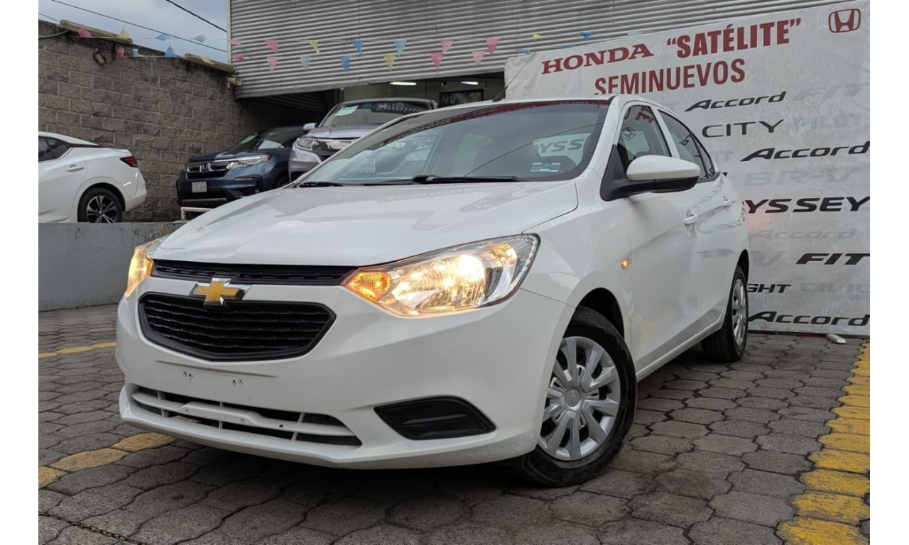 Chevrolet Aveo Ls 2023 en color blanco. Motor 1.5Lt. Con 107 Hp, transmisión automática y dirección asistida.