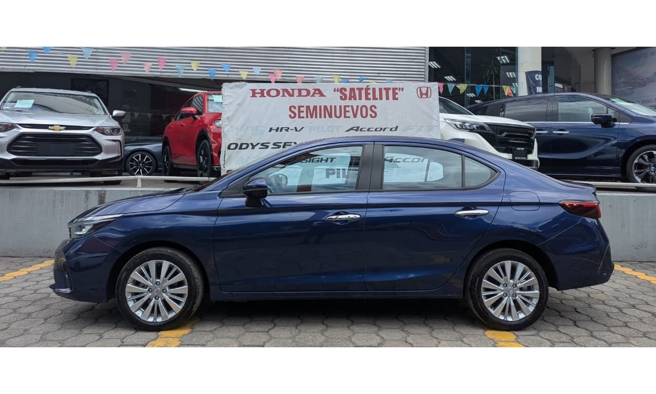 Honda City Prime Demo 2025 en color Azul. Motor 1.5 Lt. Con 119 hp. Transmisión CVT y dirección asistida.