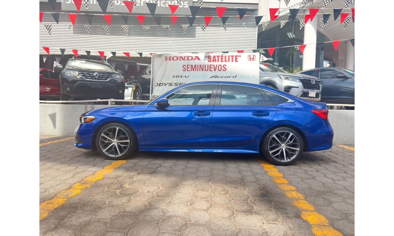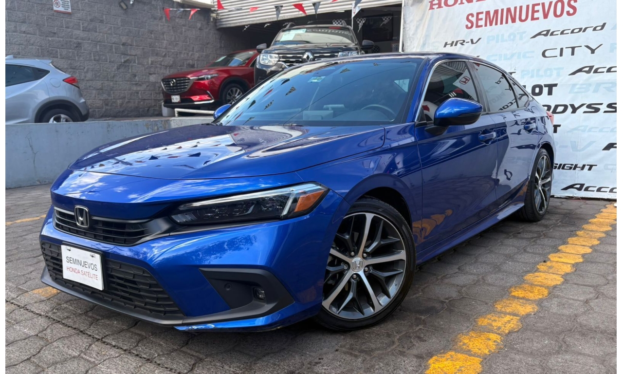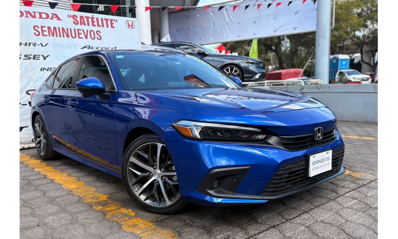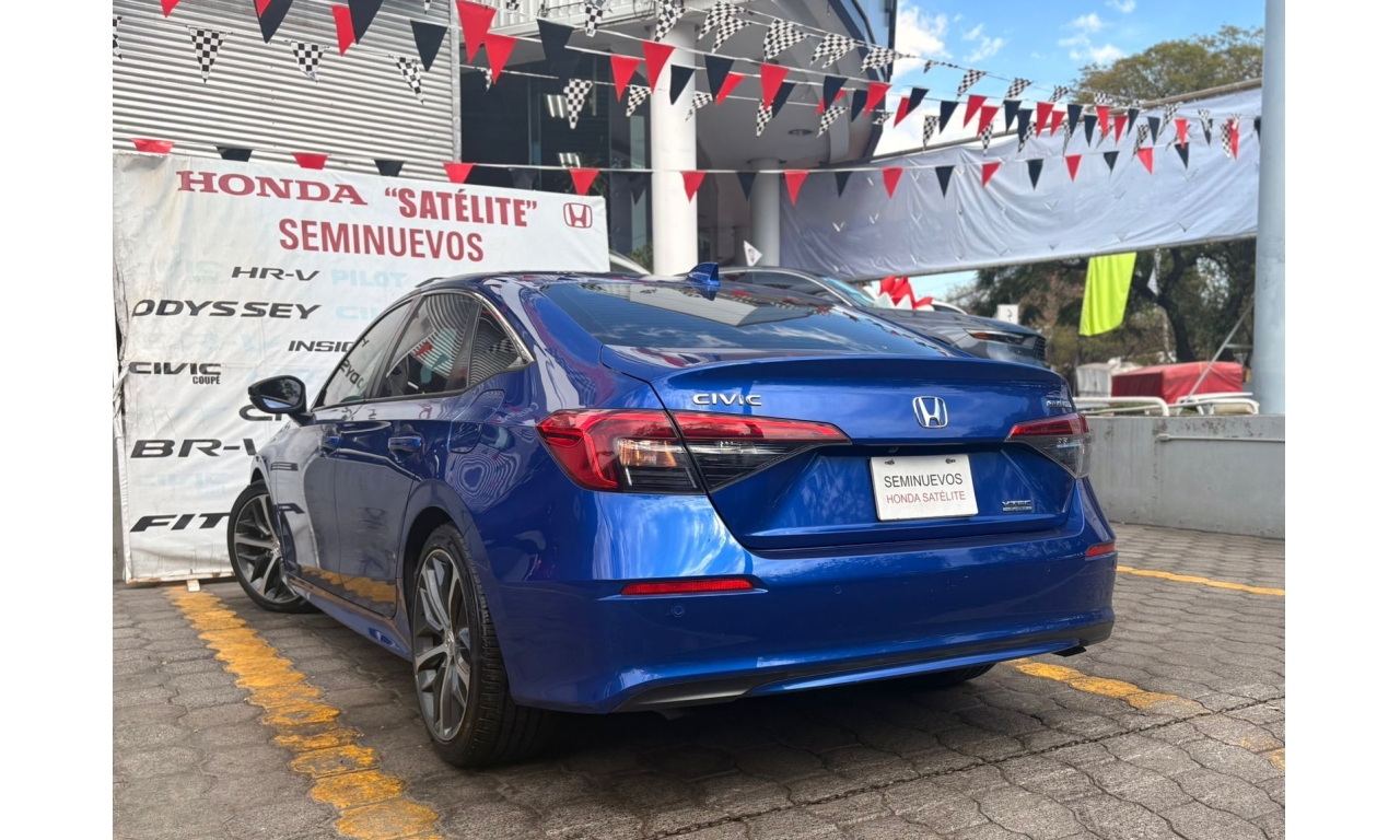 Honda Civic Touring HEV 2025 en color Azul. Motor 1.5 Lt. con 180Hp, transmisión CVT y dirección asistida.