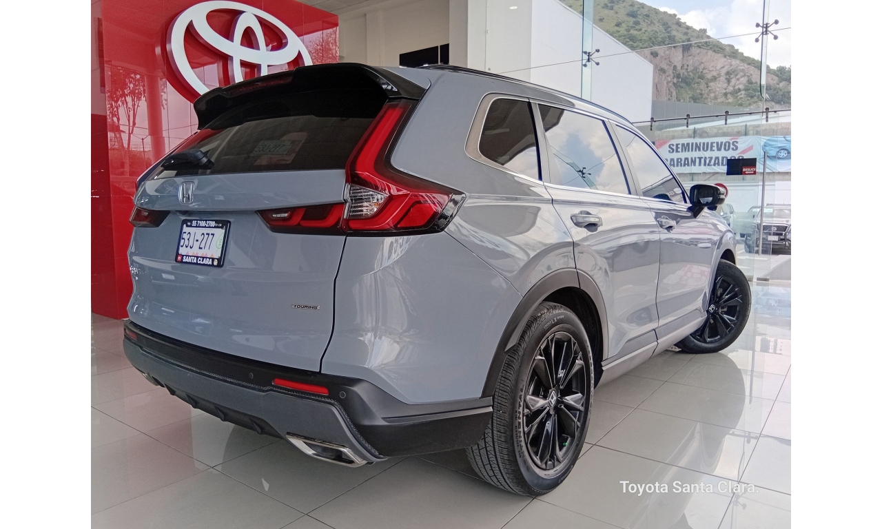 El Honda CR-V Touring híbrido 2024 ofrece un sistema de propulsión híbrido que combina un motor de 2.0 litros con dos motores eléctricos para una potencia combinada de 204 caballos de fuerza y 247 lb-pie de torque. Este modelo destaca por su eficiencia de combustible, con hasta 43 mpg en ciudad. Además, cuenta con características como asientos de piel con calefacción y ventilación, techo corredizo panorámico, sistema de sonido premium Bose y la tecnología Honda Sensing 360º