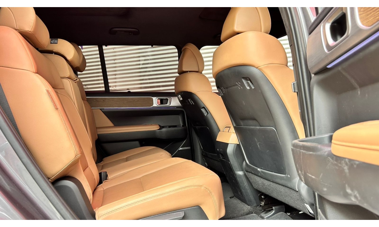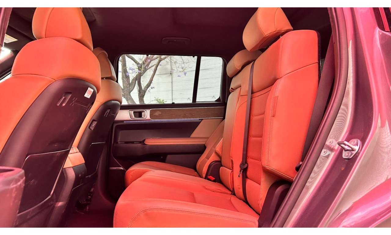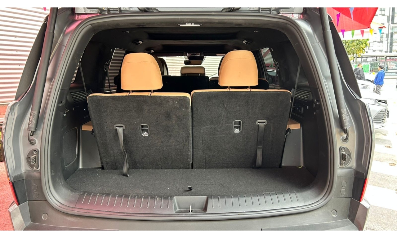 -Diseño Exterior: Estilo robusto y cuadrado con luces LED delanteras y traseras en forma de "H", luces LED de proyección dual, techo panorámico doble y rines de aluminio de 20”.