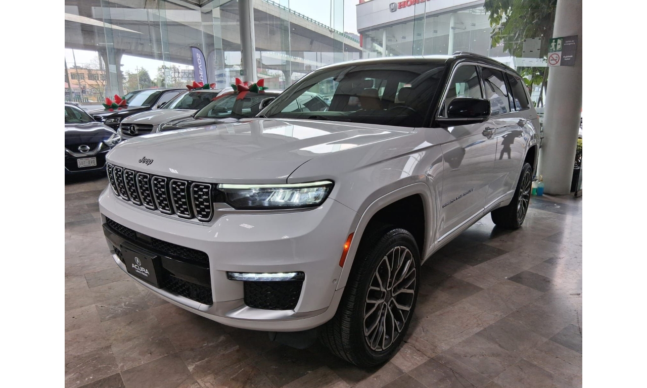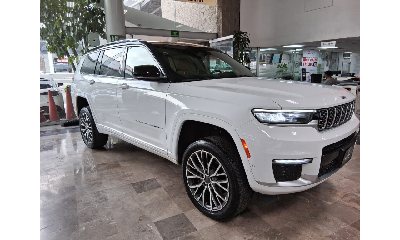 Aprovecha a estrenar con nosotros tu Jeep Grand Cherokee 2022 5.7 V8 L Summit 4x4 At con solo 64,739km vidrios eléctricos, color blanco e interiores en color marron , radio AM/FM , controles al volante, aire acondicionado, porta vasos, airbag en conductor y cristales electricos.