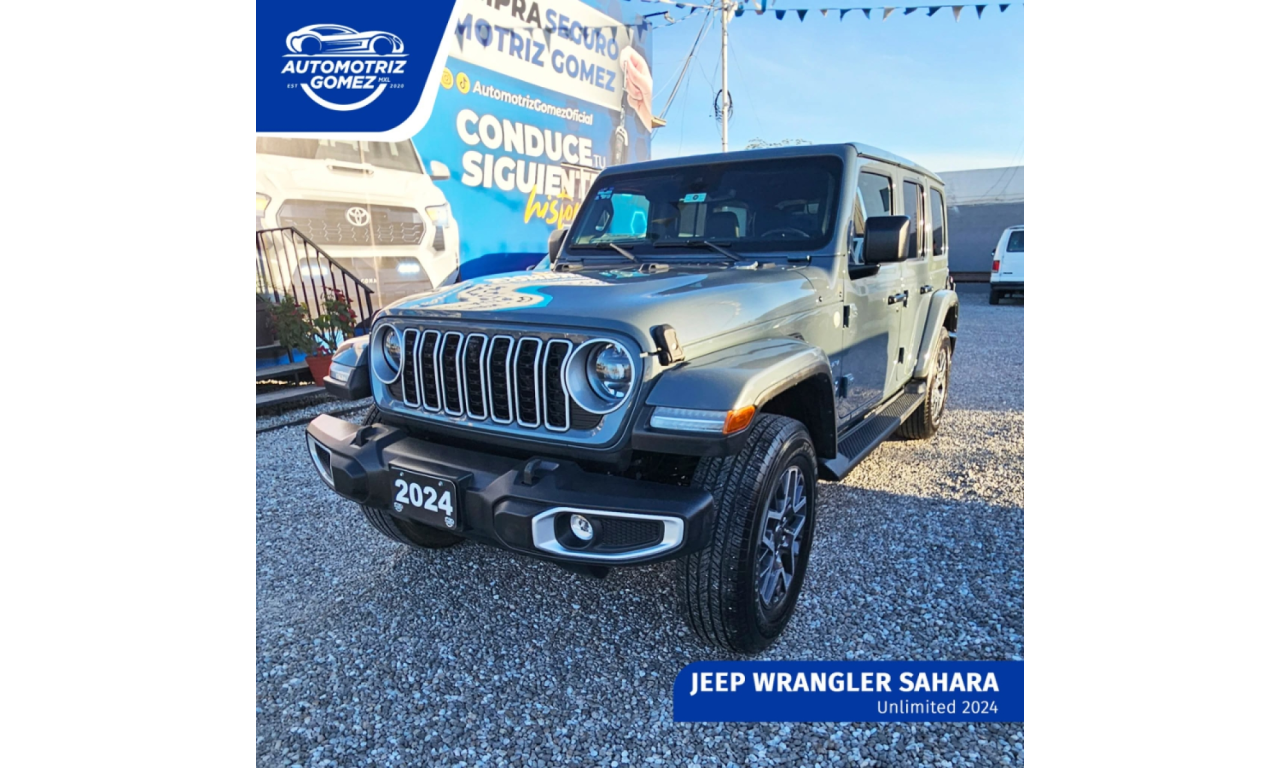 ¡DOMINA CUALQUIER CAMINO! ?️ Jeep Wrangler Sahara Unlimited 2024 disponible. Llévate el ícono de la aventura en su versión más equipada y moderna. El Sahara 2024 combina la potencia de un guerrero con la comodidad de un SUV de lujo. ✅ Año: 2024 ✅ Modelo: Sahara Unlimited (4 puertas) ✅ Destacados: Pantalla táctil de 12.3", seguridad activa y rines de lujo. No dejes que te lo ganen. ¡Mándanos un DM para agendar tu prueba de manejo o visítanos hoy mismo en Automotriz Gómez! ?