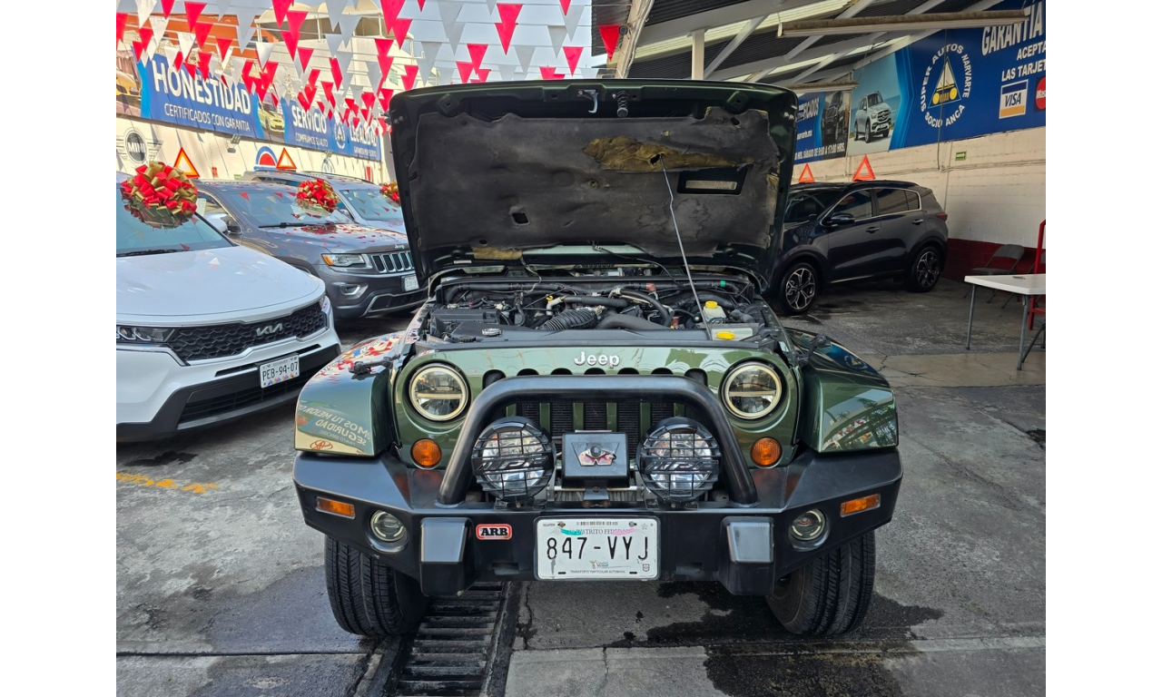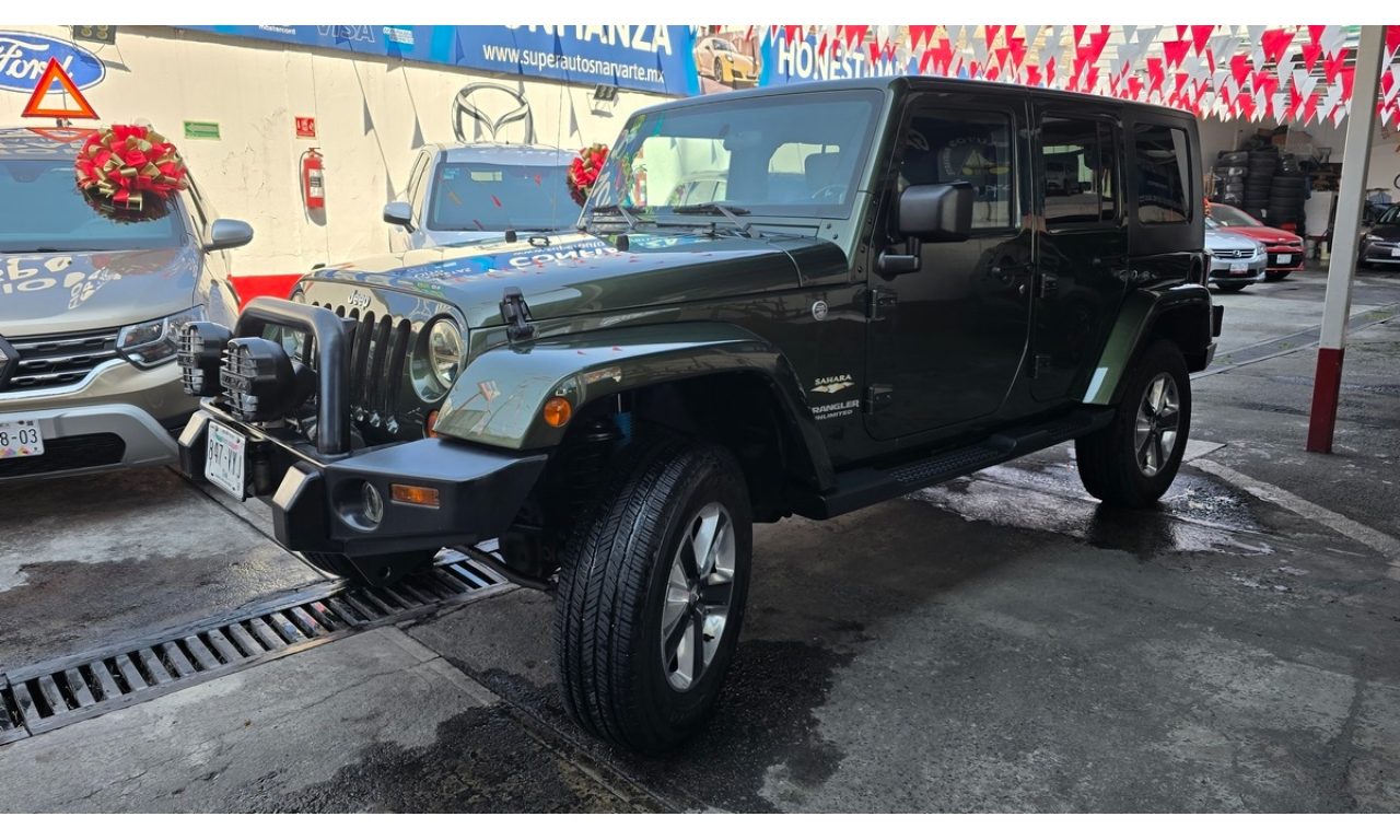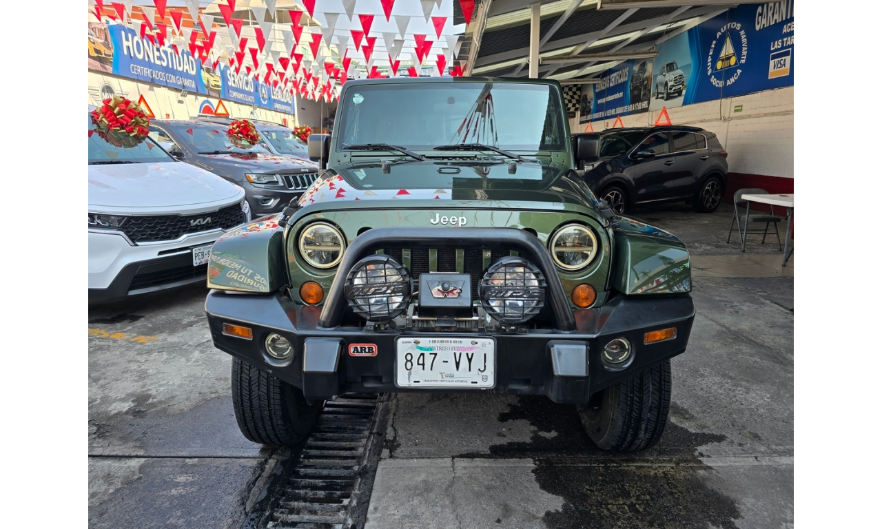 Jeep Wrangler Unlimited Sahara Modelo: 2008 Color: Verde 113,758 Kilómetros Precio de Lista: $348,600 Factura Original de Agencia Tenencias Pagadas al 2025 Placas de la CDMX Verificación CERO Circula Todos los Días Manuales Completos Carnet de Servicios Sellado Kilometraje Original NACIONAL EXCELENTES CONDICIONES EXCELENTE MANEJO CUALQUIER PRUEBA Único, Muy Cuidado Todo le Funciona Aire Acondicionado Enfriando Perfectamente Rines de Aluminio Llantas Nuevas Estéreo para 6CD'S, MP3 y AUX Toldo Duro Incluye también Toldo de Lona Faros de Niebla Frenos ABS Bolsas de Aire Winch Defensas Modificadas Motor V6 3.8L Transmisión Automática Tracción 4x4 Cualquier Prueba Certificación Legal