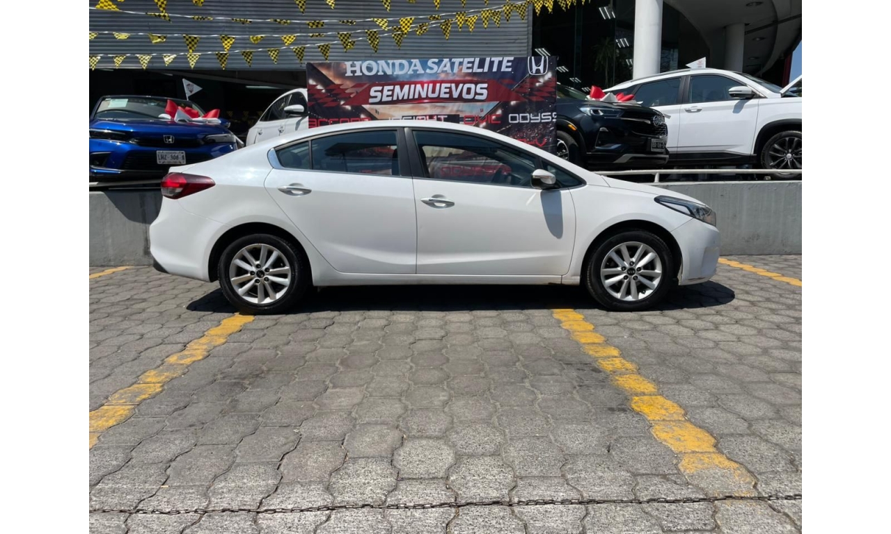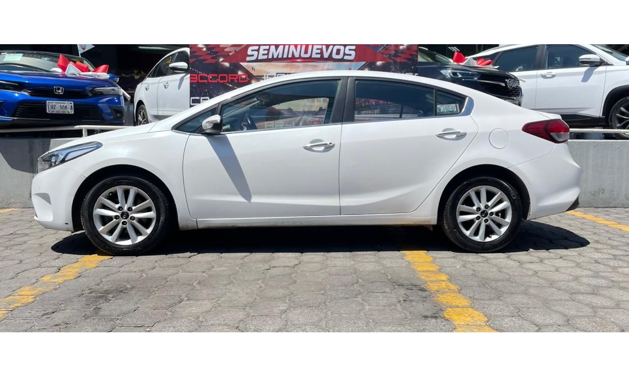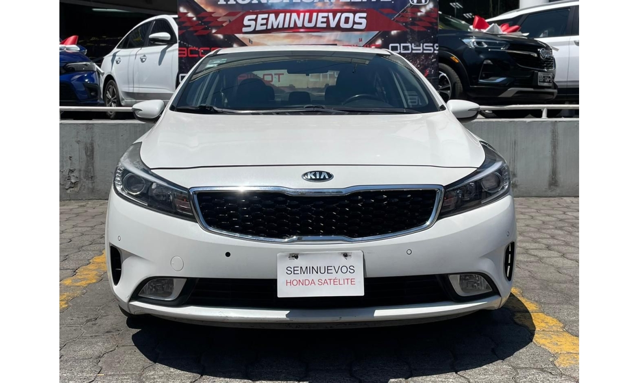 Kia Forte EX TM 2018 en color blanco. Un sedán que combina diseño moderno, eficiencia y comodidad para el día a día. Equipa motor 2.0L con transmisión manual, ofreciendo un manejo ágil y un excelente rendimiento tanto en ciudad como en carretera.