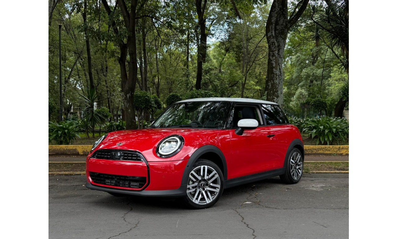 El MINI Cooper C 3 Puertas 2025 cuenta con un motor de 1.5 litros y 3 cilindros que ofrece 156 caballos de fuerza (hp) y 230 Nm de torque, con una aceleración de 0 a 100 km/h en 7.7 segundos y una velocidad máxima de 225 km/h. Su transmisión es automática de doble embrague de siete velocidades y ofrece tracción delantera. El vehículo incluye faros y calaveras LED con diseño Union Jack, pantalla central OLED, y se ofrecen diferentes colores para el toldo, cofre y retrovisores.