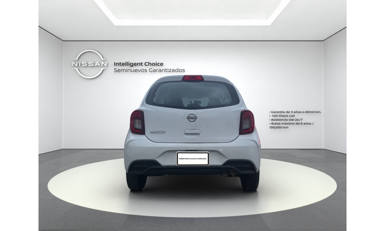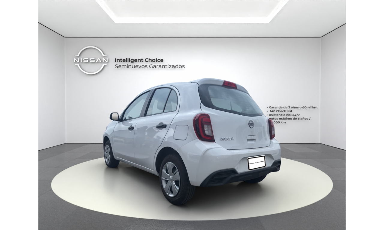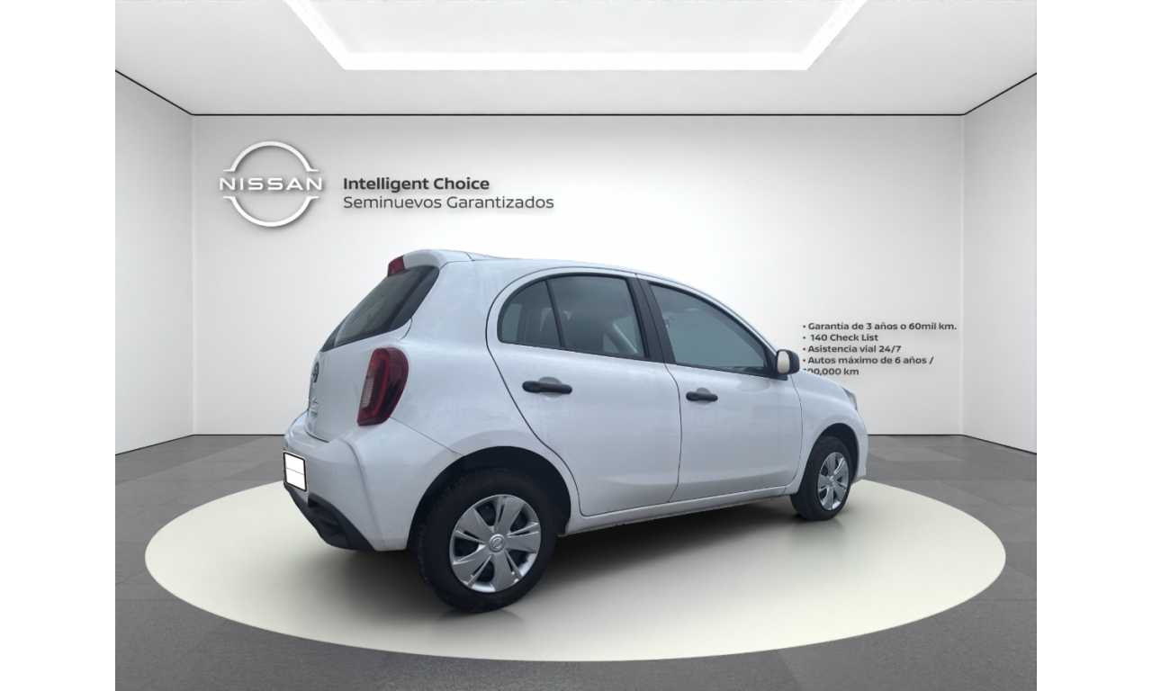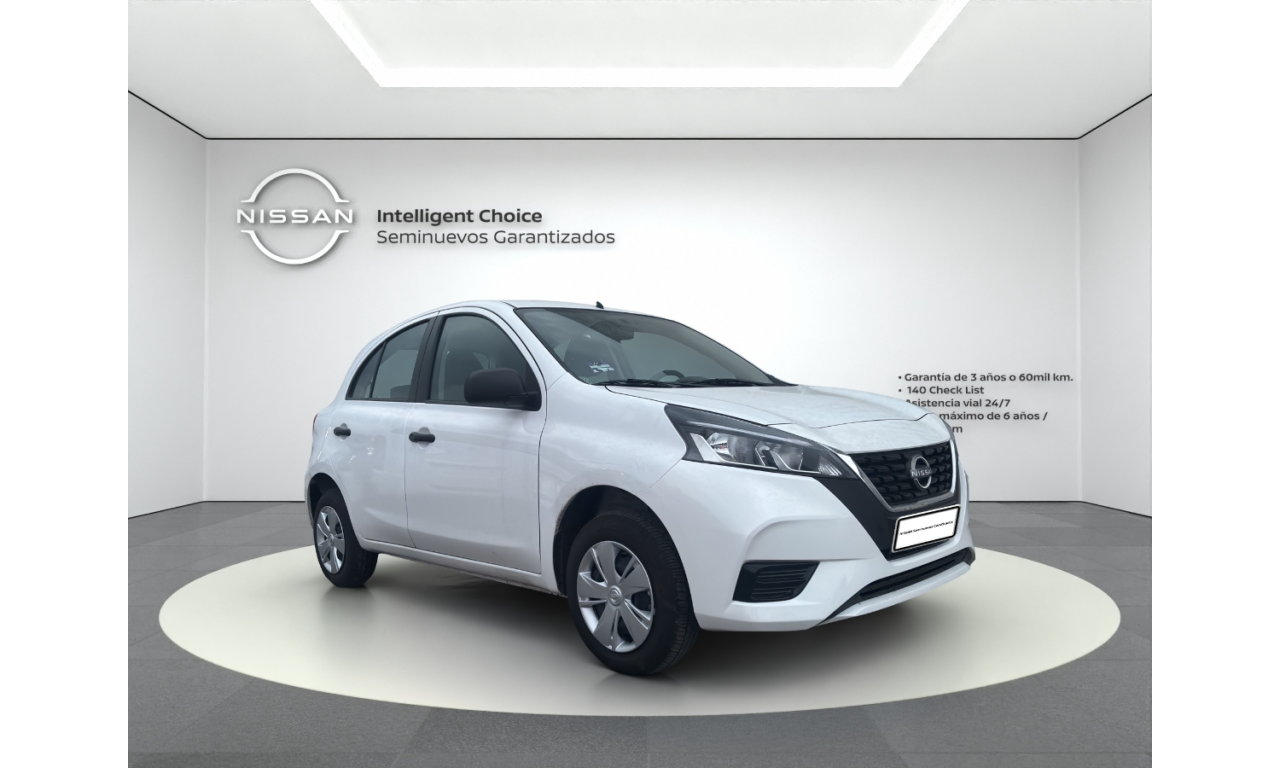 El Nissan March Sense 2025 es un hatchback subcompacto urbano, destacado por su motor 1.6L de 106 hp y alta seguridad de serie (6 bolsas de aire). Cuenta con transmisión manual de 5 velocidades frenos ABS+EBD+BA, control de tracción/estabilidad, rines de acero 14" con tapones, aire acondicionado y faros con Signature Lamps LED