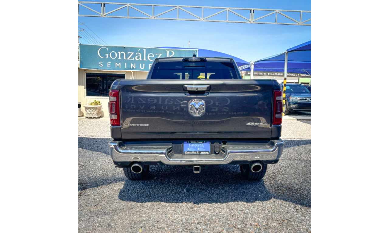 RAM 1500 MILD-HYBRID LIMITED CREW CAB 4X4 MODELO 2022 TRANSMISIÓN AUTOMÁTICA CILINDROS 8 KILOMETRAJE 89,845 COLOR EXTERIOR GRIS COLOR INTERIOR NEGRO PRECIO $999,900