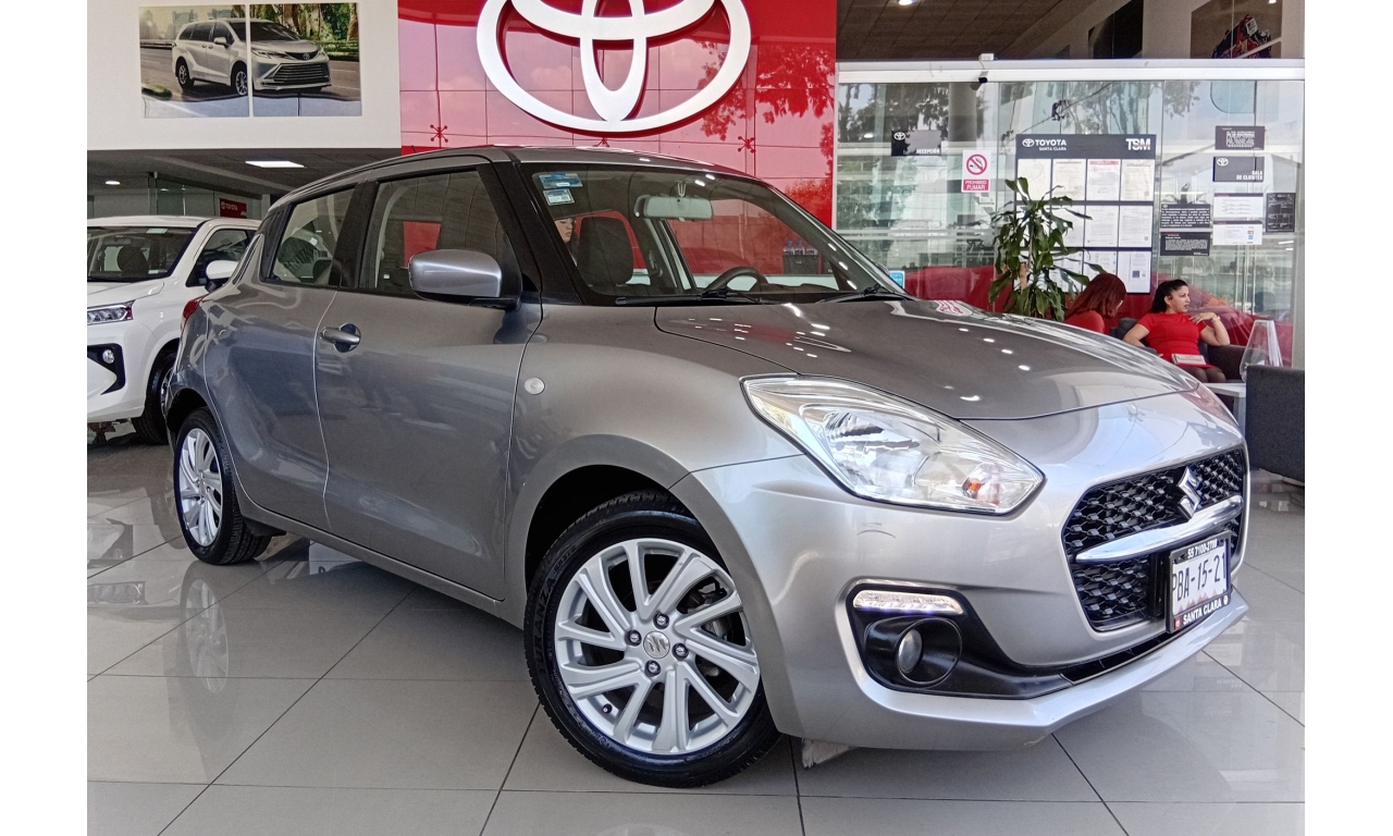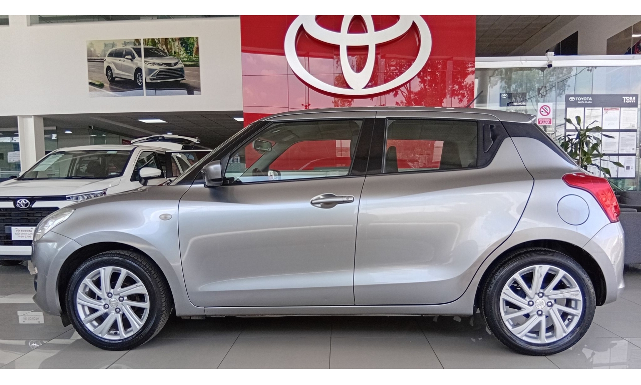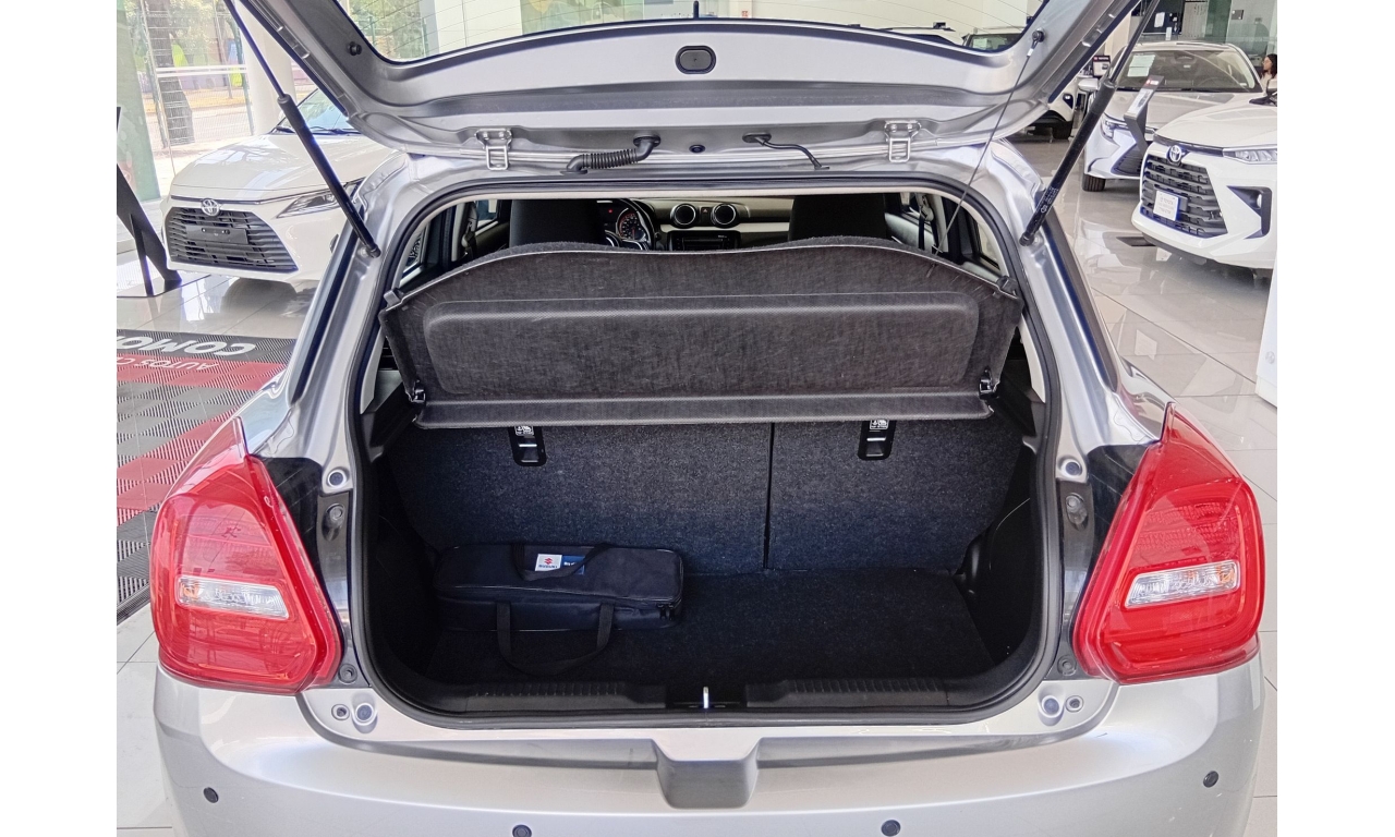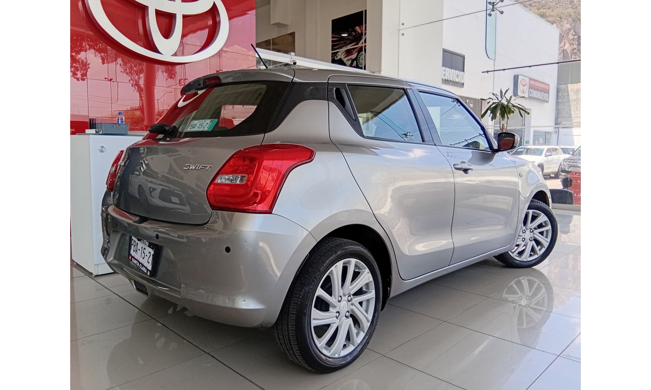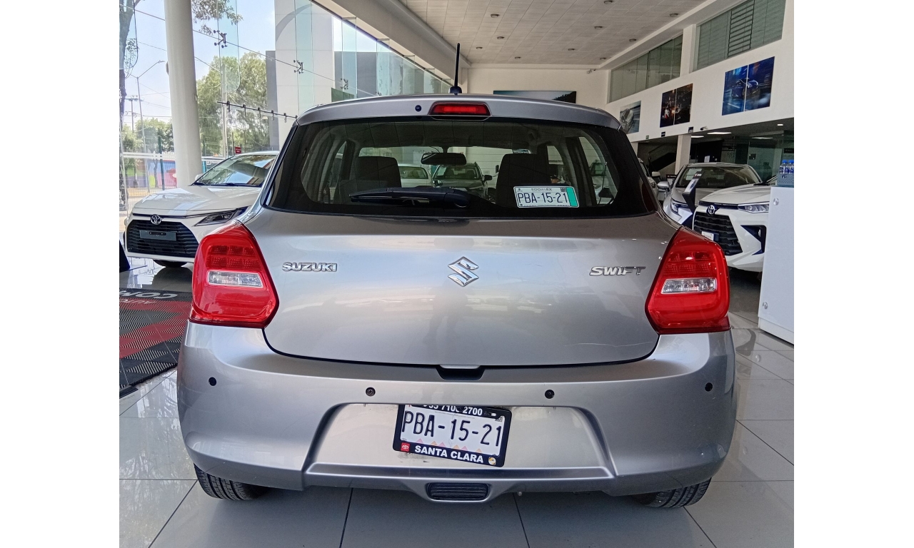 El Suzuki Swift 2021, es un hatchback subcompacto, motor 1.2 litros de 4 cilindros, faros halógenos con exploradoras (niebla) y tercer stop tipo LED, rines de aluminio de 16 pulgadas, sistema de audio con controles al volante, Bluetooth, USB y entrada auxiliar.