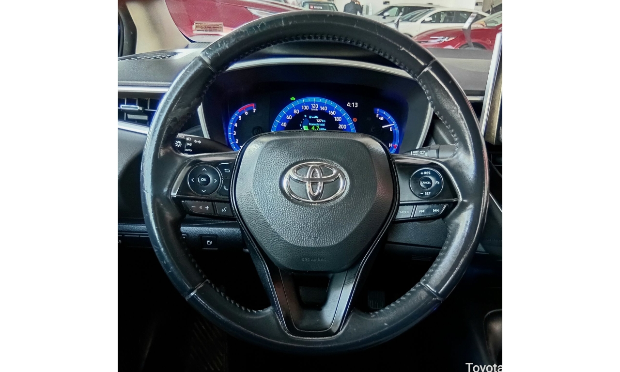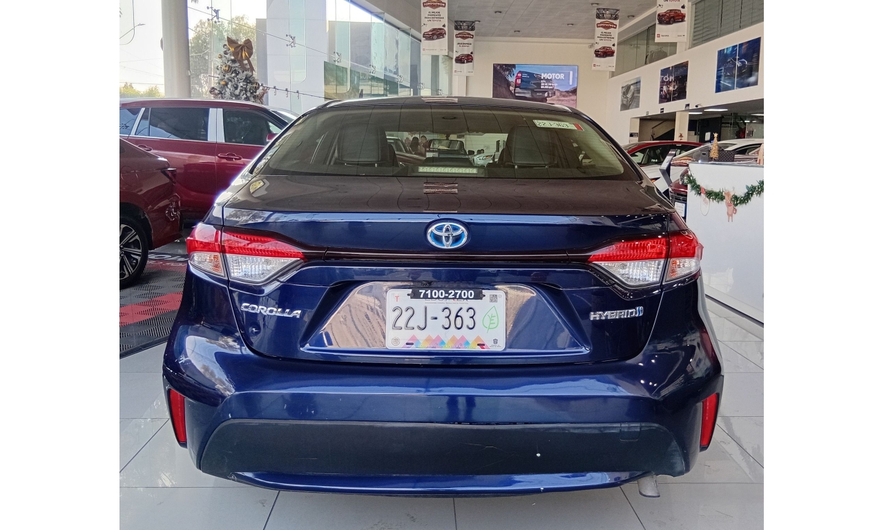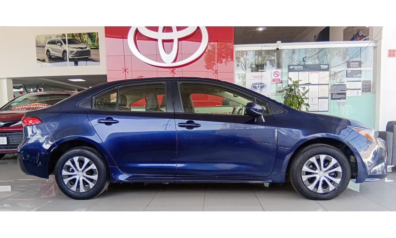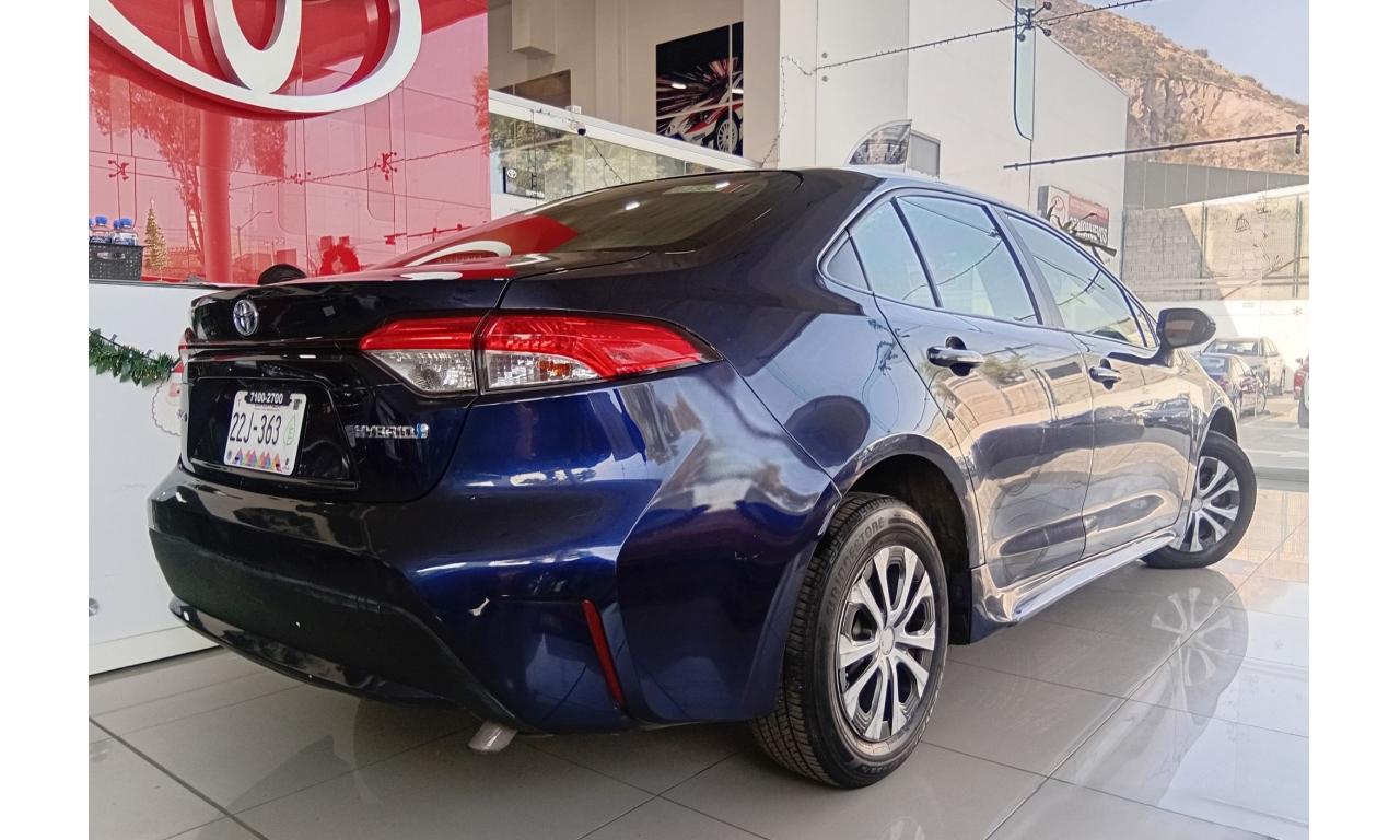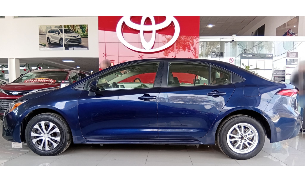 El Toyota Corolla LE se caracteriza por su eficiencia híbrida autorecargable (1.8L + motor eléctrico, ~121 HP), motor de 4 cilindros, excelente consumo (más de 29 km/L), transmisión automática E-CVT, conectividad Android Auto/Apple CarPlay, 7 bolsas de aire (frontales, laterales, de cortina y de rodilla para conductor), y sistemas de seguridad como el Star Safety System (ABS, BA, VSC, HAC), todo bajo la plataforma TNGA para mayor seguridad y manejo.