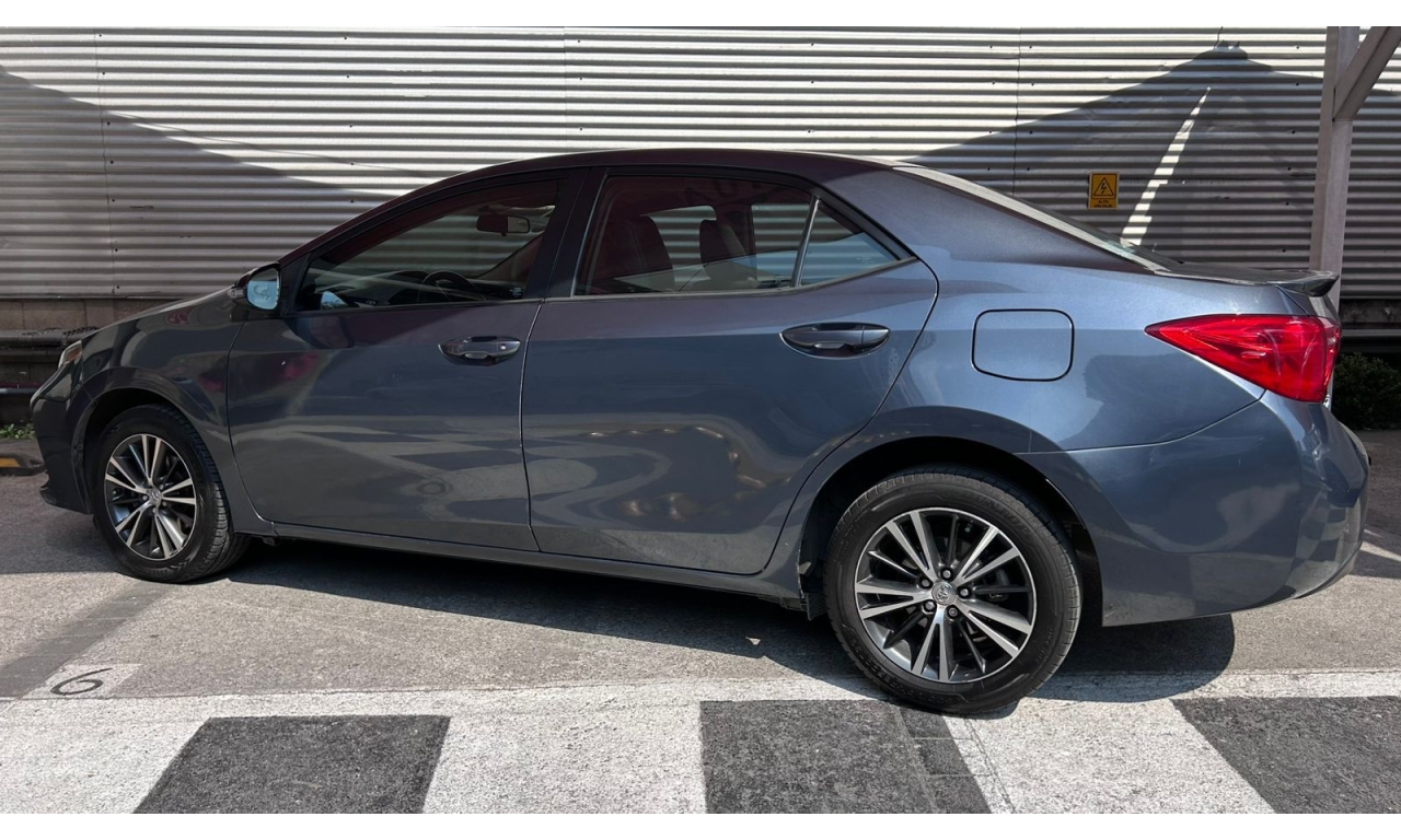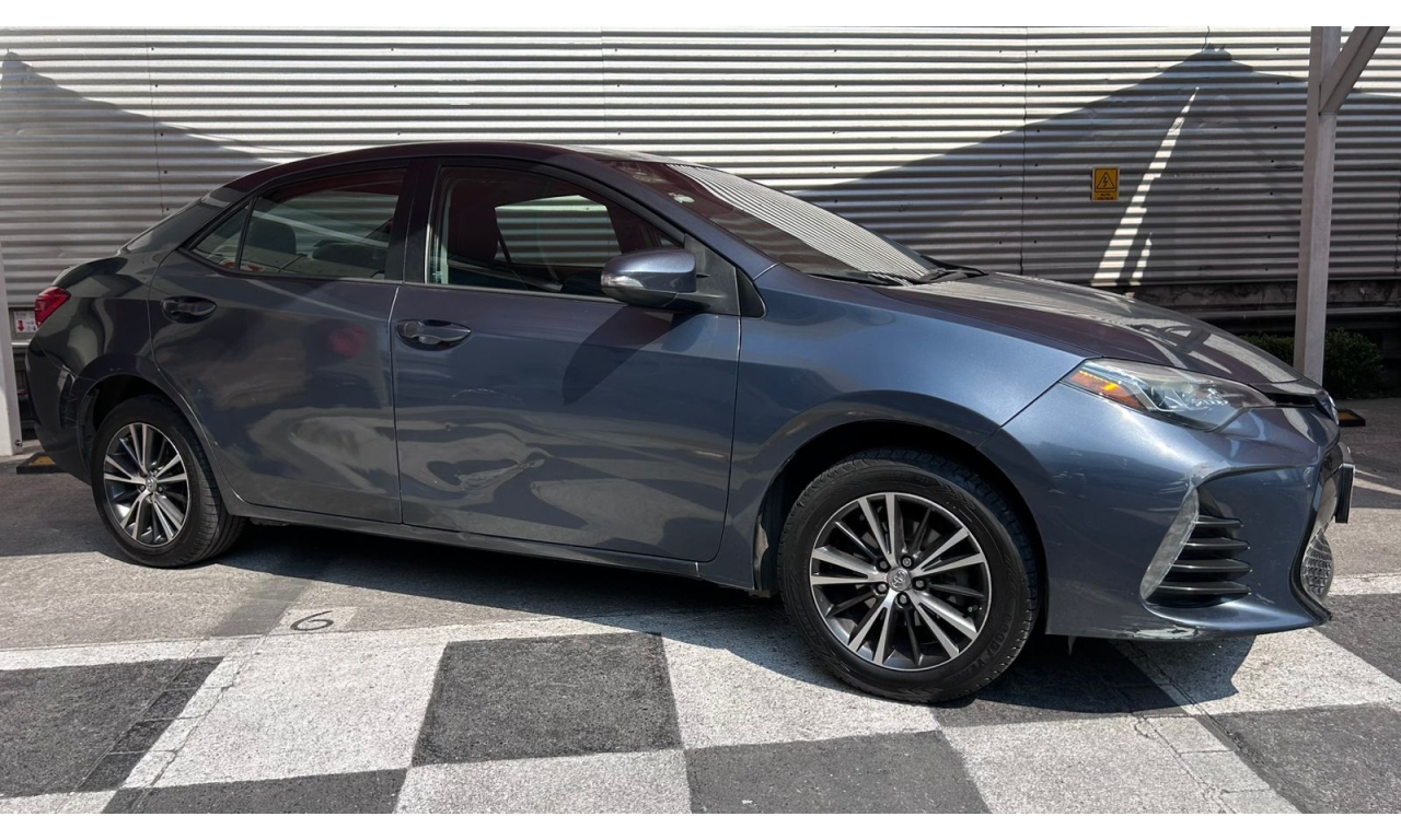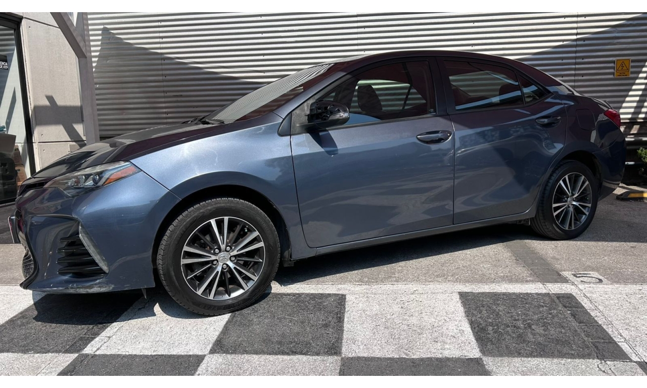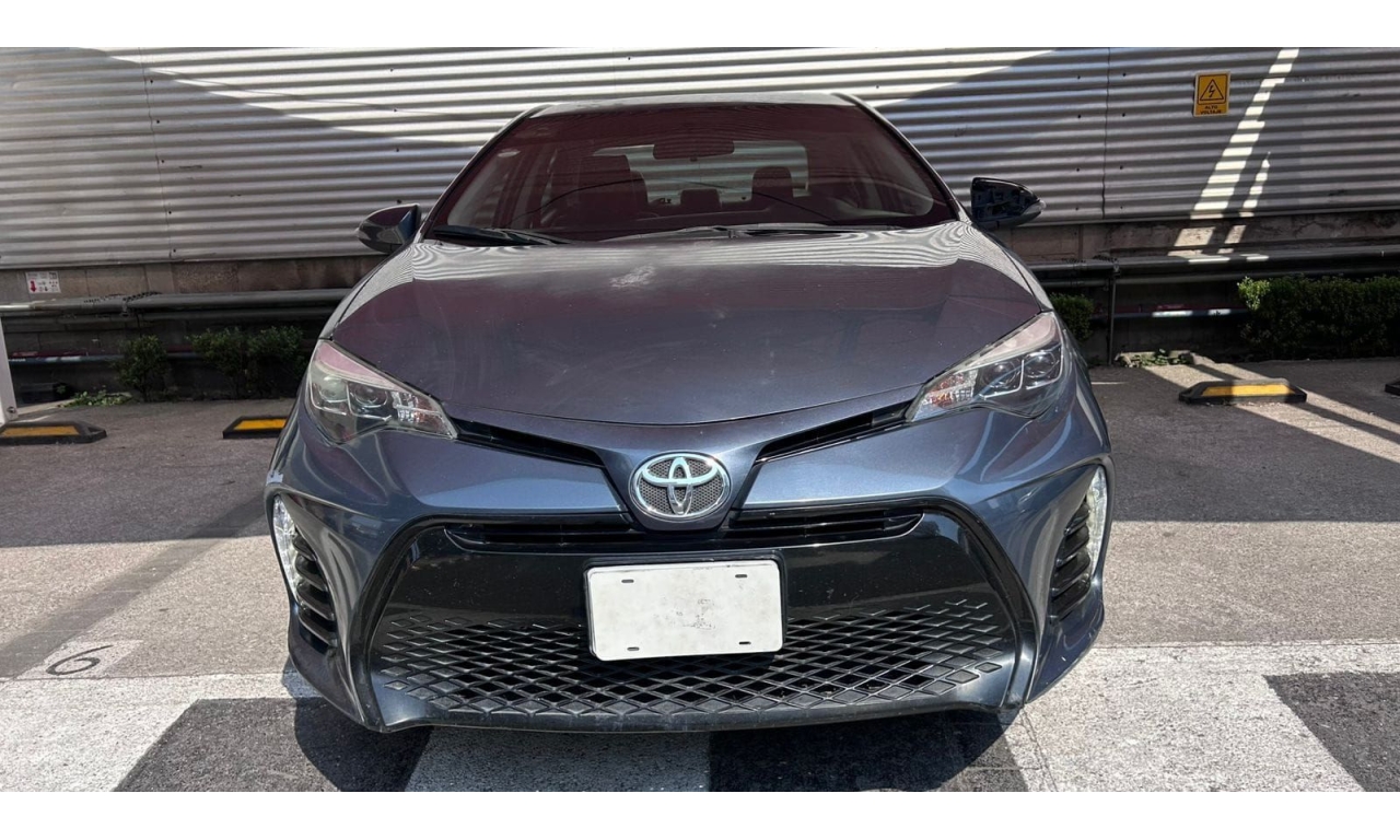 COROLLA - 2017 -Motor: 1.8 litros, 4 cilindros, con una potencia de aproximadamente 140 hp y 174 Nm de torque. -Transmisión: Manual de seis velocidades (MT). -Exterior: Diseño frontal más deportivo con parrilla ampliada, iluminación Bi-LED con proyectores separados y faros diurnos LED verticales. -Interior: Tapicería deportiva en tela y piel sintética, display multiinformación a color de 4.2 pulgadas, y sistema de acceso y encendido sin llave "Smart Key". -Tecnología: Pantalla táctil de 7 pulgadas con AM/FM, reproductor MP3, mini jack, seis bocinas, USB y Bluetooth. -Seguridad: Ocho bolsas de aire y sistema de frenos ABS.