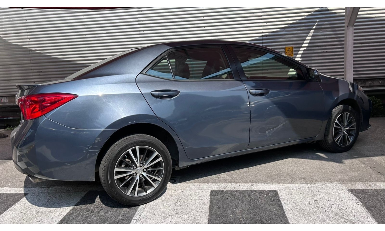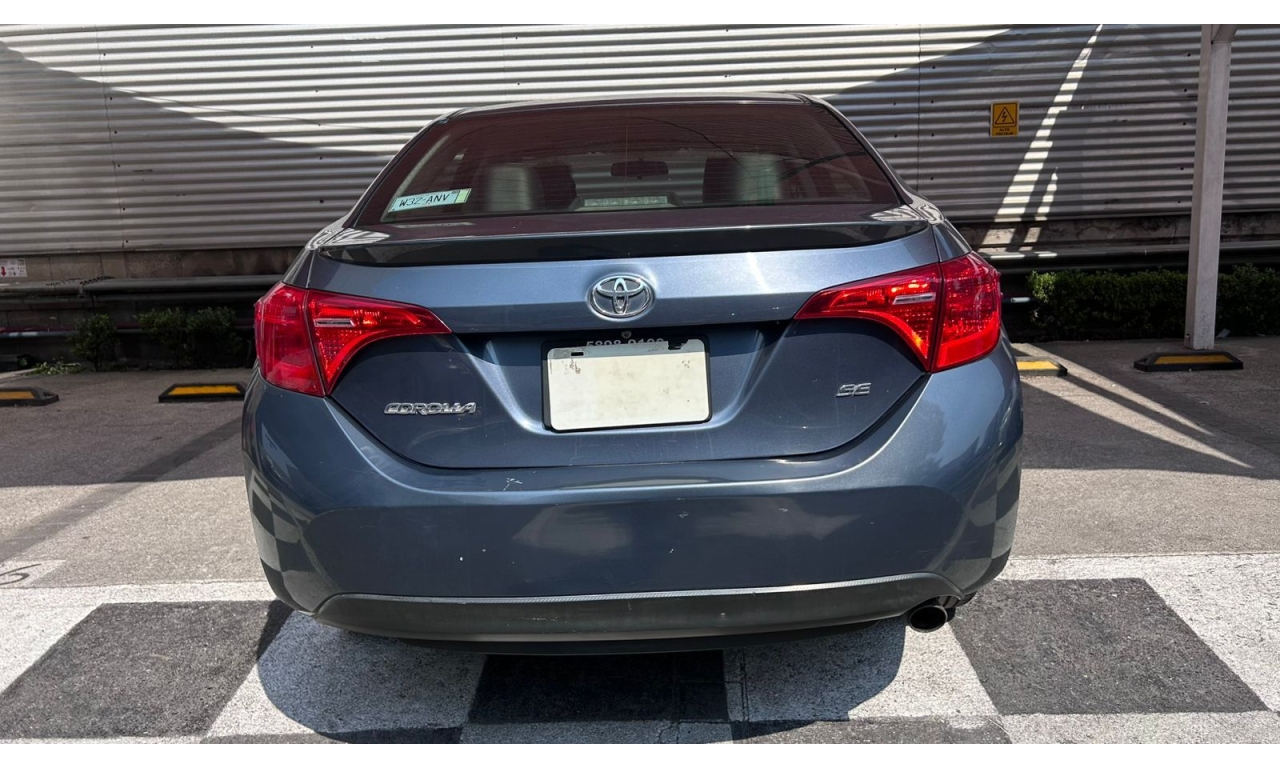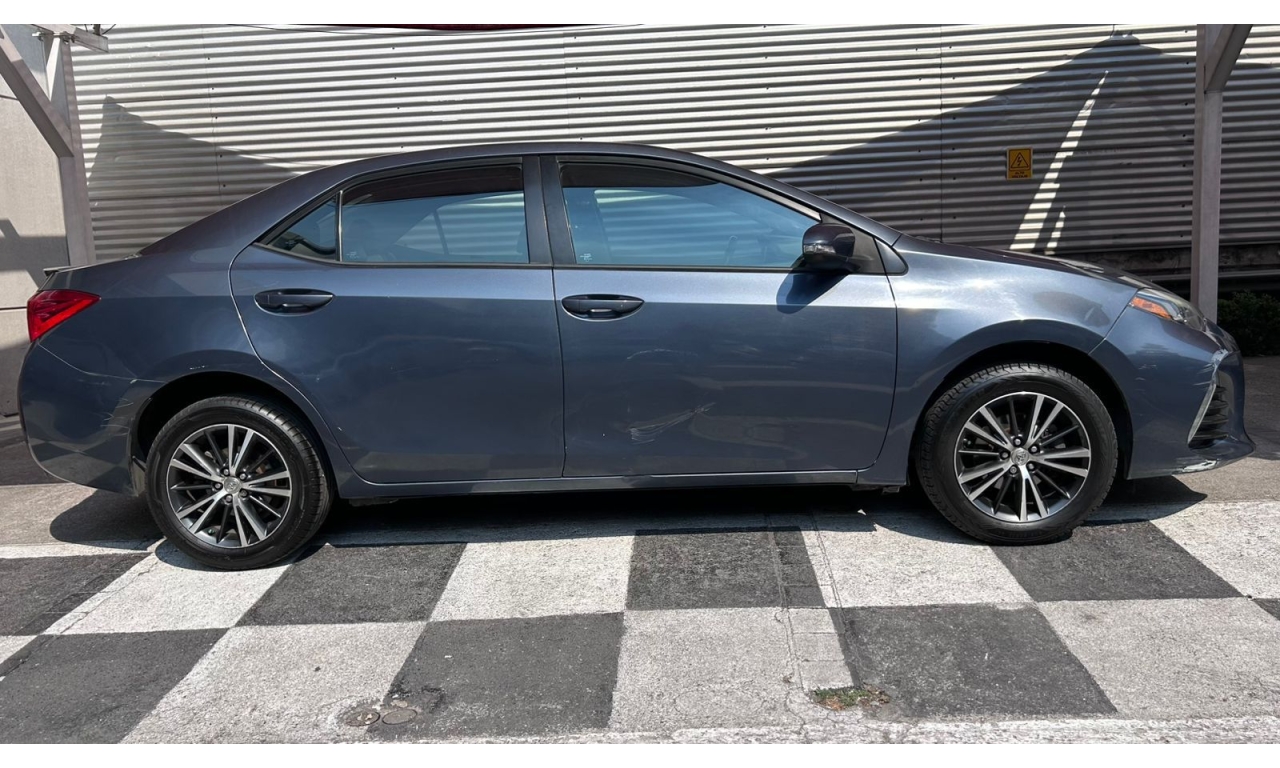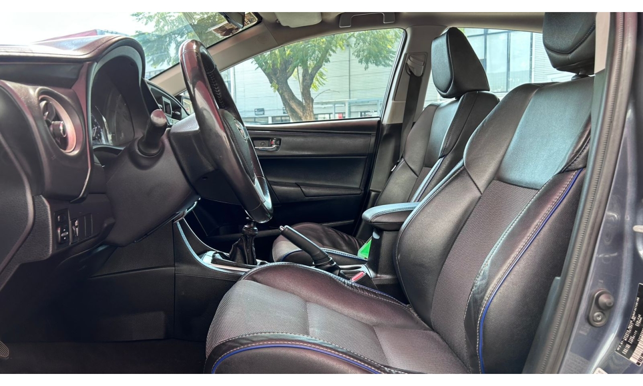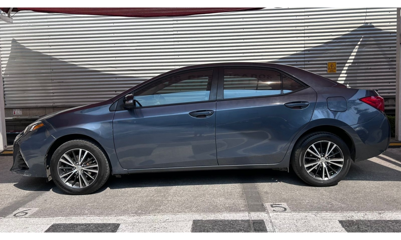 COROLLA - 2017 -Motor: 1.8 litros, 4 cilindros, con una potencia de aproximadamente 140 hp y 174 Nm de torque. -Transmisión: Manual de seis velocidades (MT). -Exterior: Diseño frontal más deportivo con parrilla ampliada, iluminación Bi-LED con proyectores separados y faros diurnos LED verticales. -Interior: Tapicería deportiva en tela y piel sintética, display multiinformación a color de 4.2 pulgadas, y sistema de acceso y encendido sin llave "Smart Key". -Tecnología: Pantalla táctil de 7 pulgadas con AM/FM, reproductor MP3, mini jack, seis bocinas, USB y Bluetooth. -Seguridad: Ocho bolsas de aire y sistema de frenos ABS.