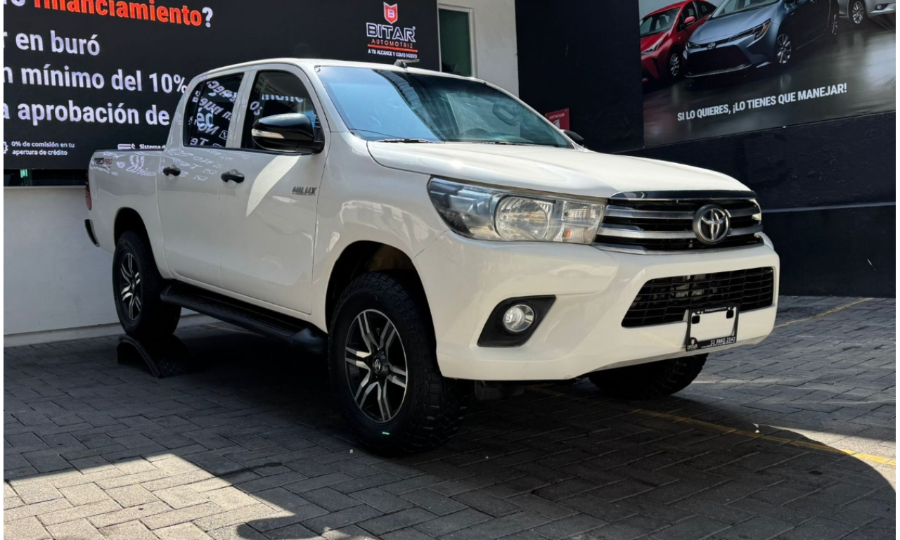 TOYOTA HILUX BASE DOBLE CABINA 2016 BLANCO #4786 • TRANSMISIÓN MANUAL • 4 CILINDROS *MOTOR 2.7 L • AIRE ACONDICIONADO *TRACCIÓN TRASERA • VIDRIOS Y SEGUROS ELÉCTRICOS • DIRECCIÓN HIDRÁULICA * ESTEREO AM/FM/USB Y CD • FRENOS DELANTEROS EN DISCO Y TRASEROS DE TAMBOR CON SISTEMA ABS • CAPACIDAD EN CARGA DE HASTA 805 KG • FAROS DE NIEBLA • RIN EN ALUMINIO DE 17”