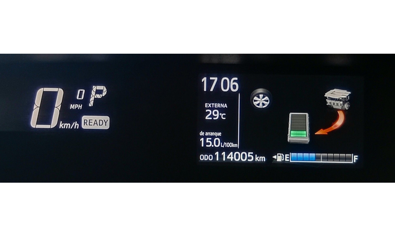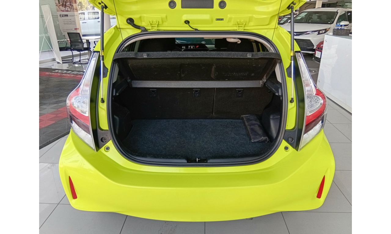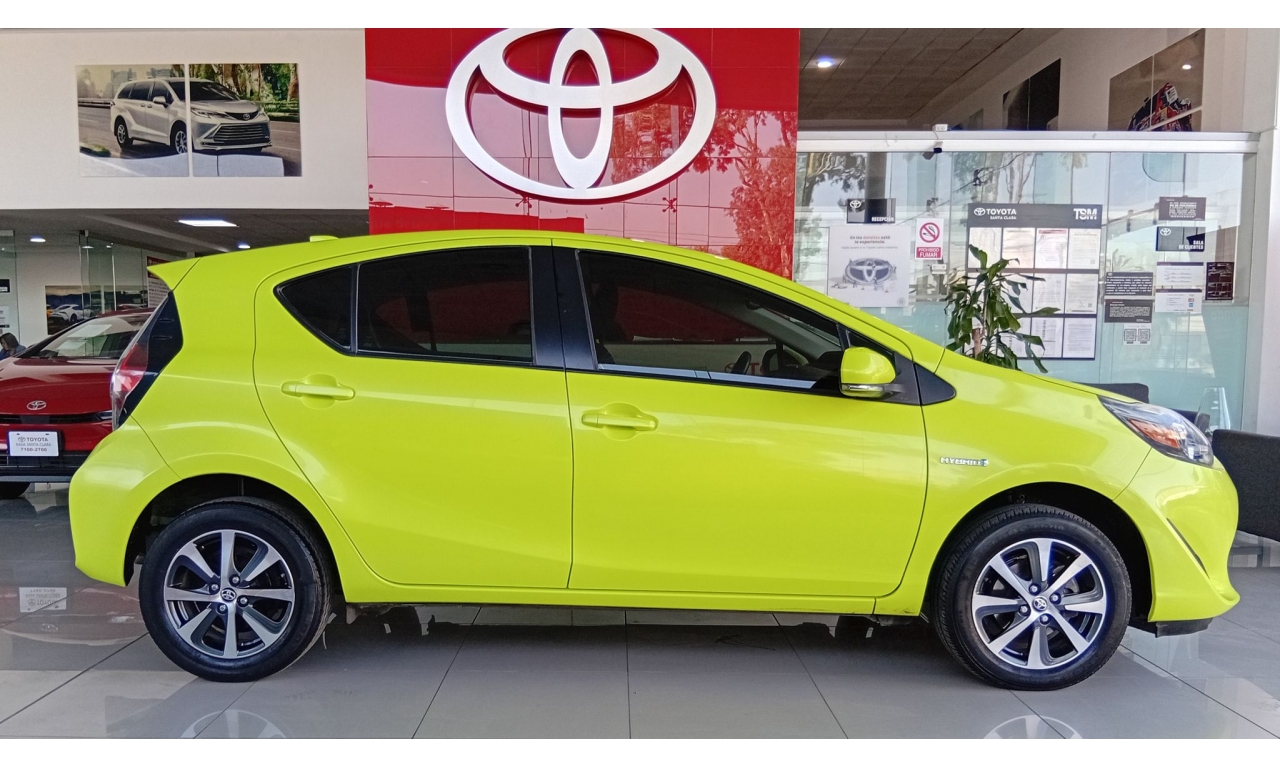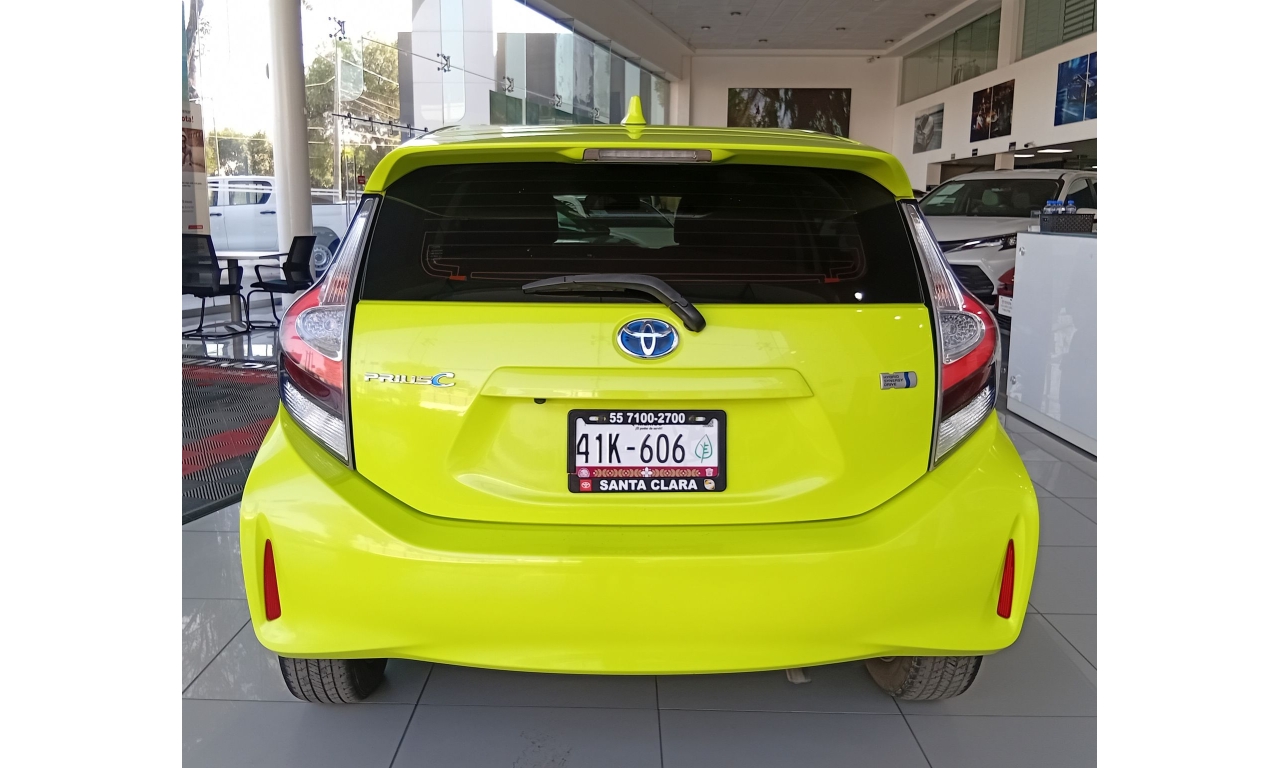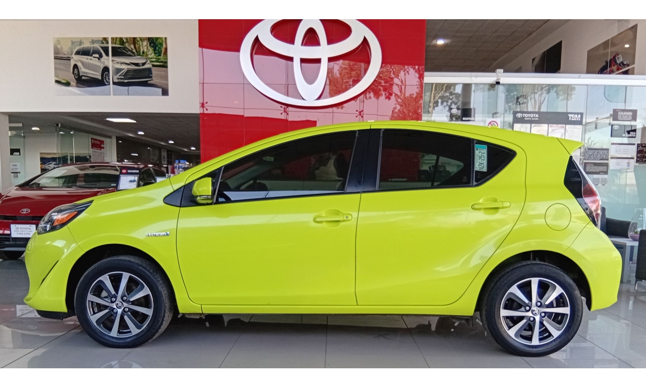 El Toyota Prius C es un vehículo híbrido con un motor de 1.5 litros y 99 caballos de fuerza, alcanzando hasta 3.7 litros por cada 100 km, con una autonomía combinada de hasta 978 km, nueve airbags para mayor seguridad, cámara de reversa y un sistema de infoentretenimiento con pantalla táctil, conectividad Bluetooth y sistema de sonido.