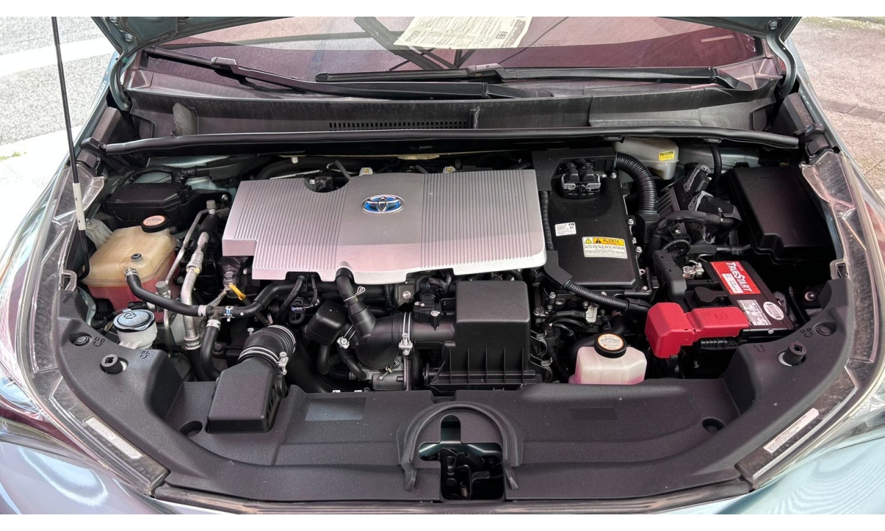 PRIUS - 2017 -Sistema Híbrido: Un motor de gasolina de 1.8 litros se acopla a motores eléctricos, generando una potencia combinada de 121 caballos de fuerza. -Transmisión Automática (CVT): Proporciona una aceleración suave y contribuye a la eficiencia del vehículo. -Frenado Regenerativo: El sistema regenera energía eléctrica al frenar, recargando la batería y mejorando la autonomía. *Tecnología y Conveniencia -Pantallas y Conectividad: Incluye una pantalla táctil y una pantalla multiinformación para el conductor, además de conectividad Bluetooth. -Llave Inteligente: Permite el acceso al vehículo y el encendido del motor mediante un botón, eliminando la necesidad de la llave física. -Cámara de Reversa: Facilita las maniobras de estacionamiento.