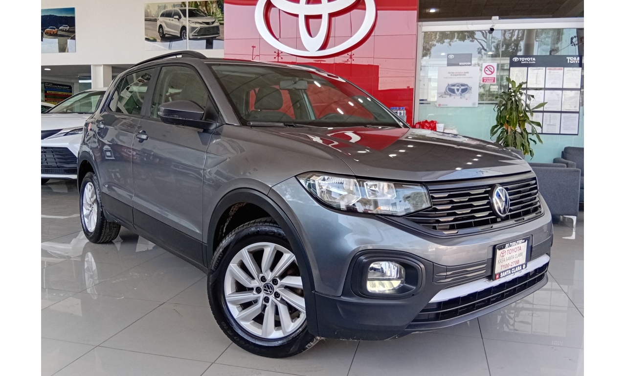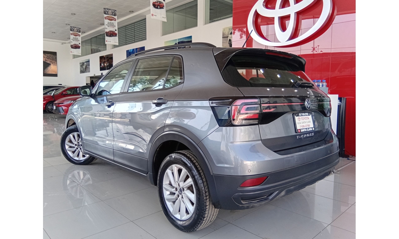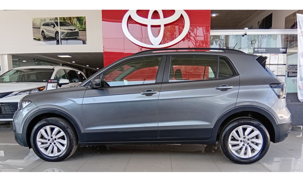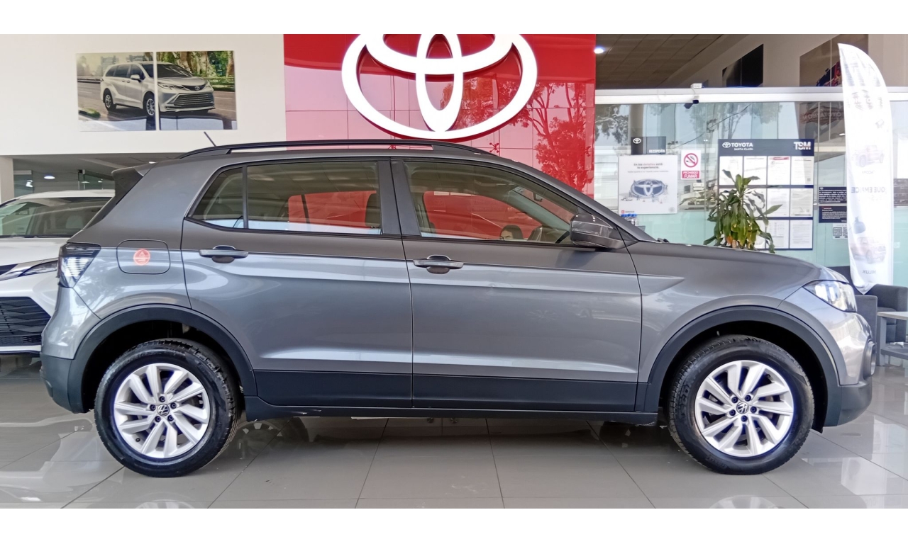 El Volkswagen T-Cross es un SUV compacto con motor de 1.6L, 4 cilindros (110 HP), transmisión automática Tiptronic de 6 velocidades, con 6 bolsas de aire, control de estabilidad (ESC) y frenos ABS, además de características como sistema de infoentretenimiento, cámara de reversa.