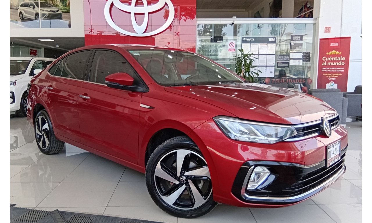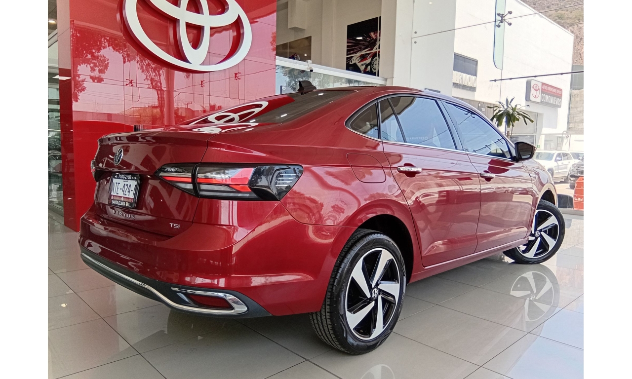El Volkswagen Virtus 2024 Highline es un sedán, equipado con un motor 3 cilindros 1.0L TSI. Rines de aluminio de 17 pulgadas, faros principales y calaveras con tecnología LED, luces de niebla con función de curva y quemacocos. Incluye 6 bolsas de aire (2 frontales, 2 laterales, 2 tipo cortina), control crucero adaptativo (ACC), asistente de colisión frontal con freno de emergencia y cámara de visión trasera.