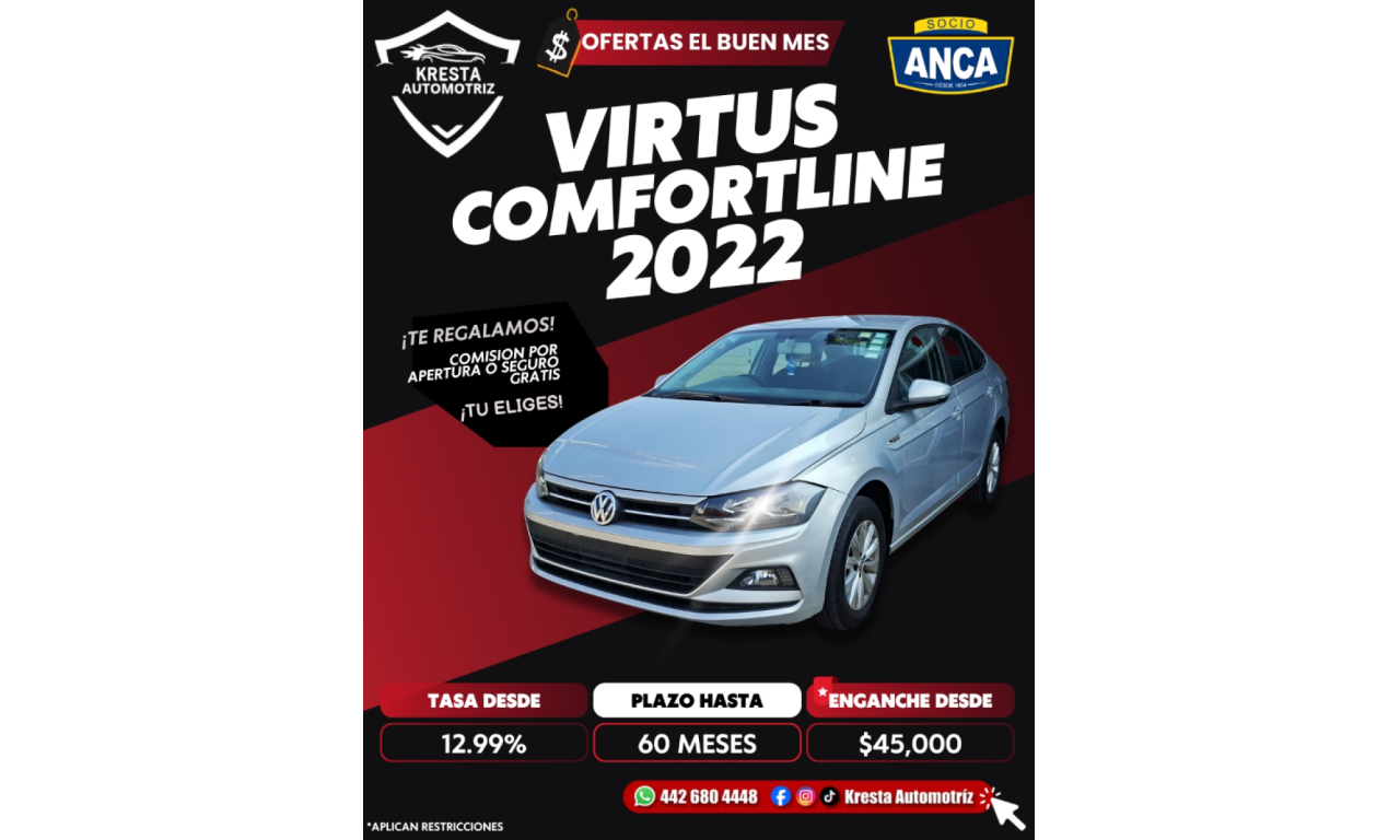 4 PTS. COMFORTLINE, 1.6 LT., TM 5, A/AC., VE, PANTALLA 10