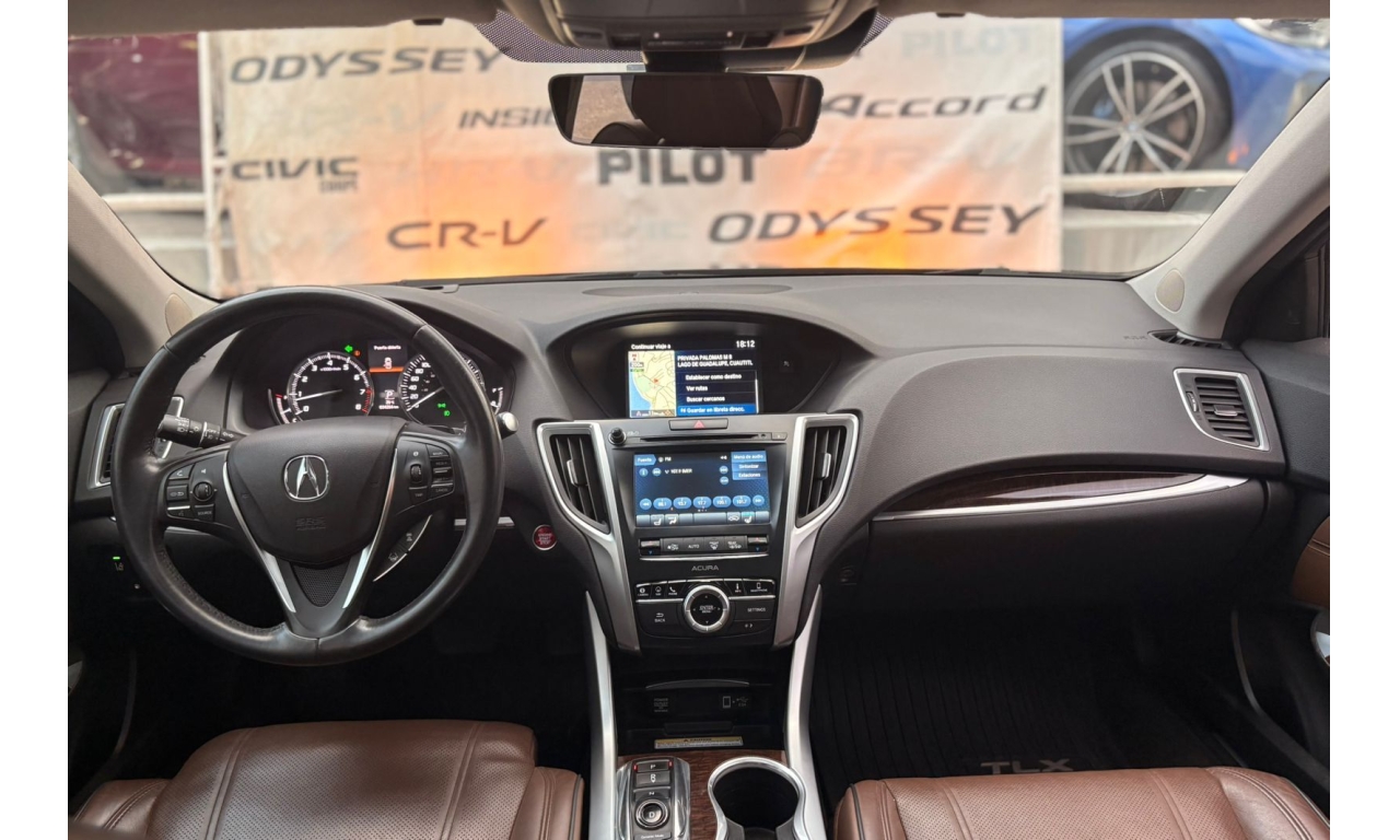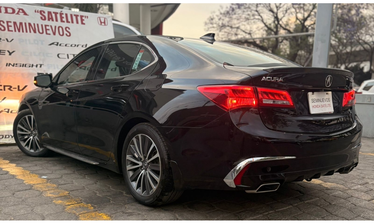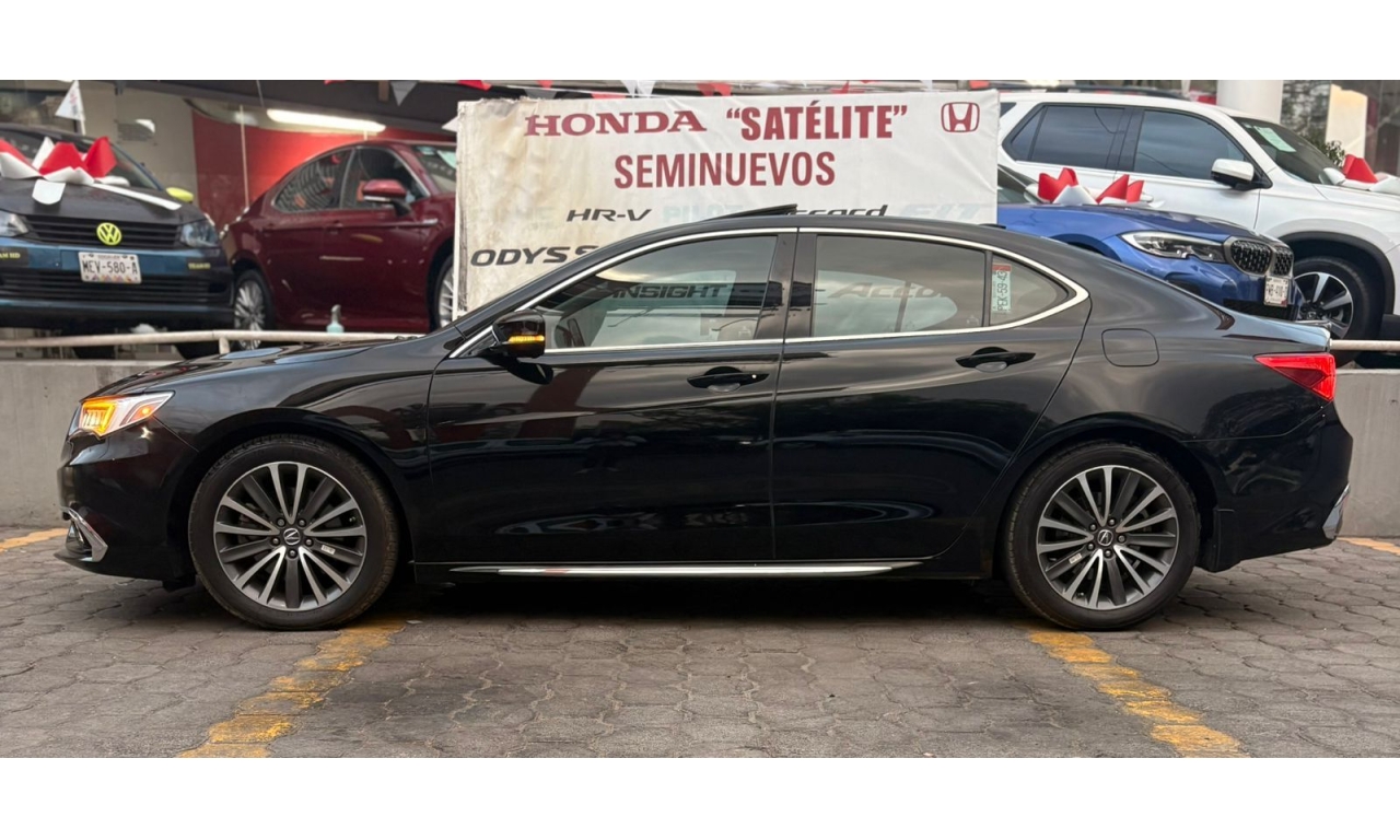 ACURA TLX 2018- color Negro Motor: 3.5 L Caballos de Fuerza: 290 Hp Es un sedán de lujo deportivo de tamaño mediano. La versión con motor 3.5 L V6 es la más potente del modelo y ofrece buen rendimiento y equipamiento premium. Transmisión: automática Asientos de piel con ajuste eléctrico Pantalla doble con sistema multimedia Apple CarPlay y Android Auto Cámara y sensores de estacionamiento Sistema de sonido premium ELS Studio Control de crucero adaptativo Frenado automático de emergencia Asistente de mantenimiento de carril