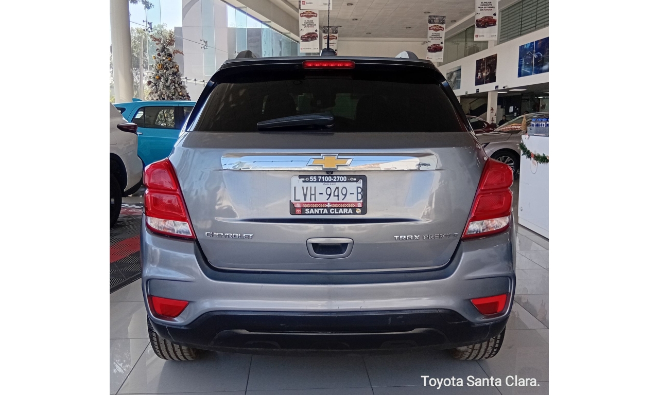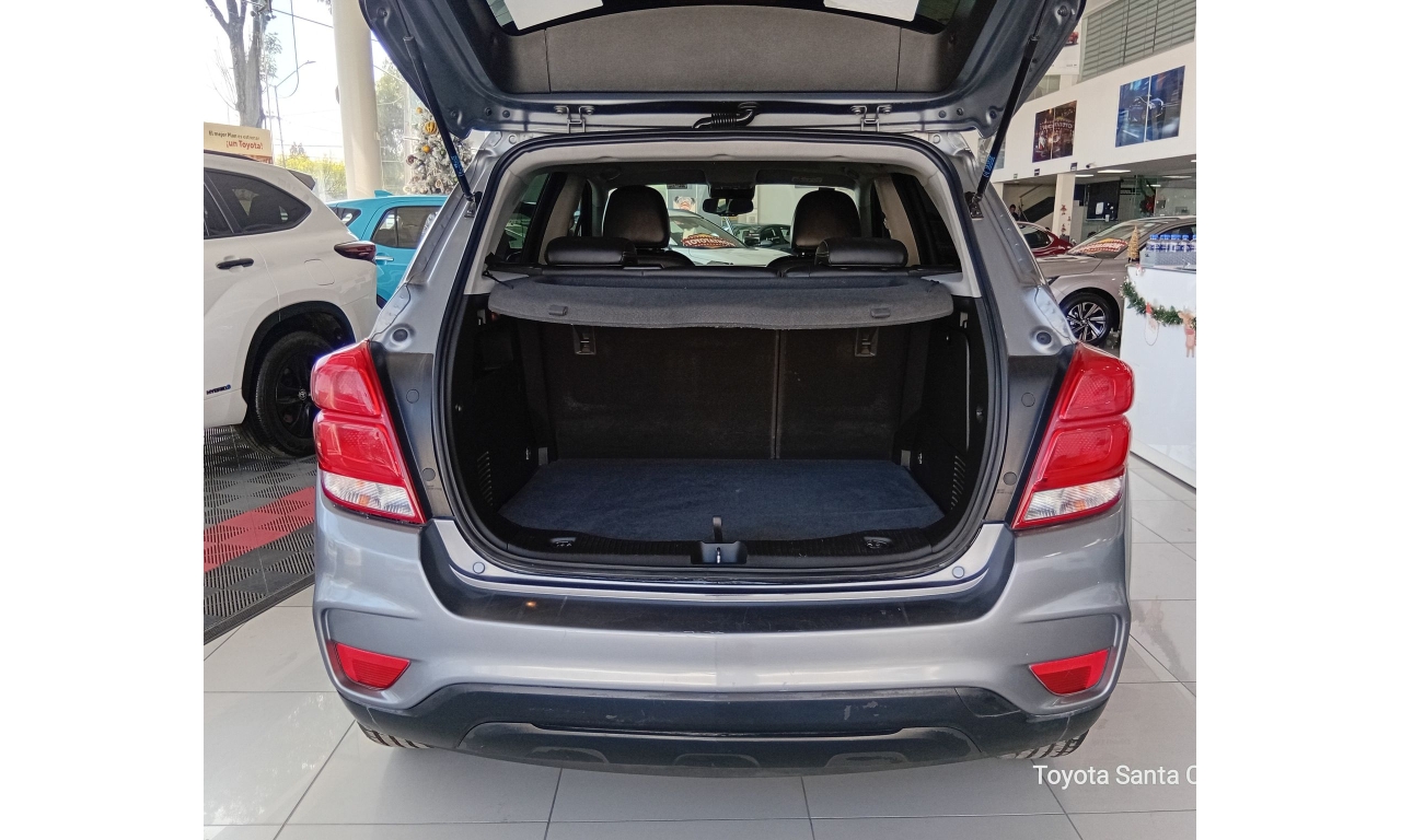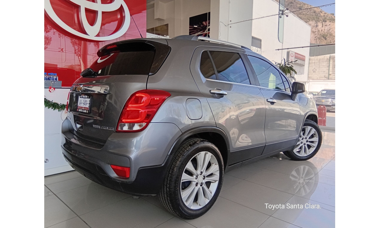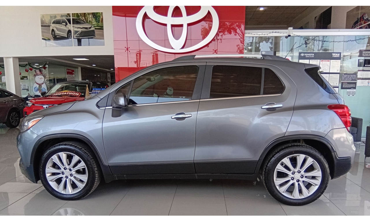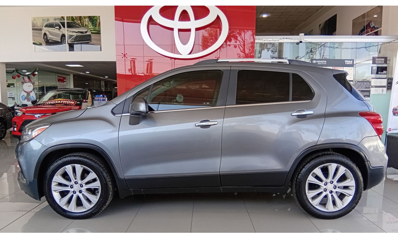 La Chevrolet Trax cuenta con motor 1.8L de 140 HP, transmisión automática, acabados interiores en piel, quemacocos, y tecnología como pantalla táctil de 7" con Android Auto/Apple CarPlay, y servicios OnStar con Wi-Fi; se complementa con rines de 18", faros de niebla LED, y paquete de seguridad con 6 bolsas de aire y control de estabilidad.
