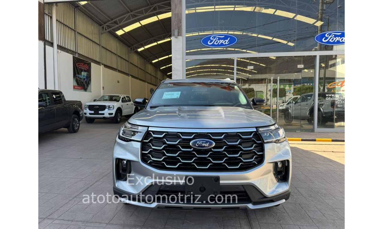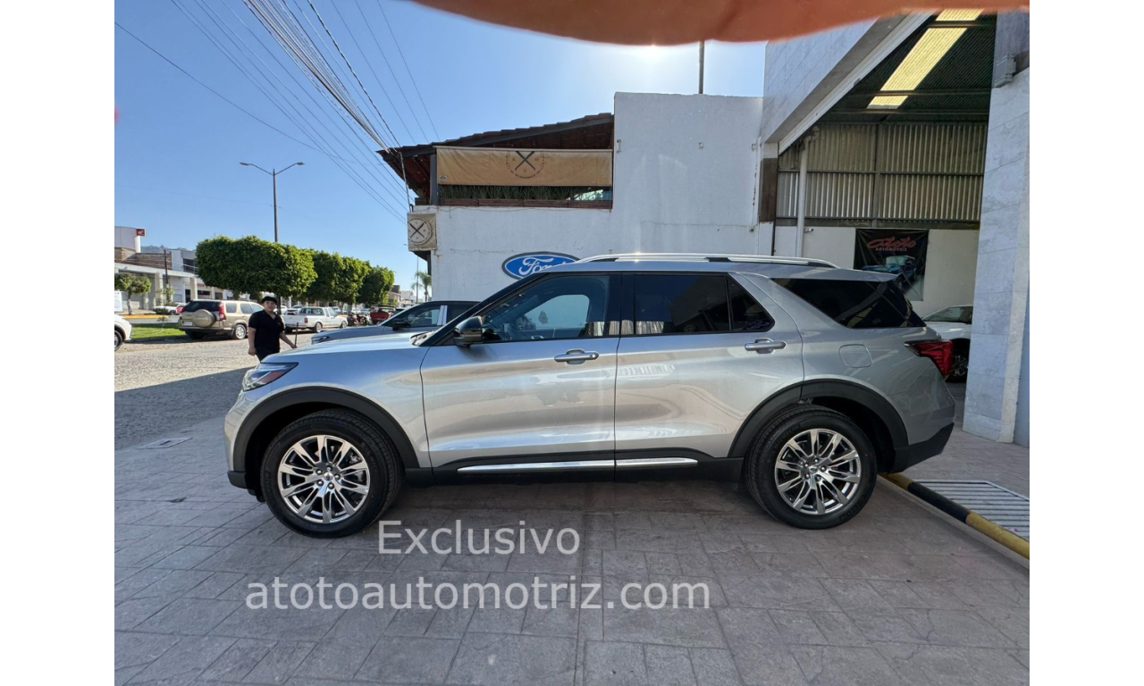 Financiamiento desde el 12.99% anual en vehículos del 2018 en adelante. Tramitamos tu Créditos con: Banorte Scotiabank Bancomer HSBC y Banregio Sujeto a aprobación. Contáctenos para atender su solicitud. Pregunta por nuestras promociones. 2025 Ford Explorer Platinum Color Plata Vestiduras en Piel Negro Transmisión: Automática Techo Panorámico Aire Acondicionado Vidrios Eléctricos Frenos ABC Ventas, acuerdos, pagos y enganches únicamente en nuestras oficinas