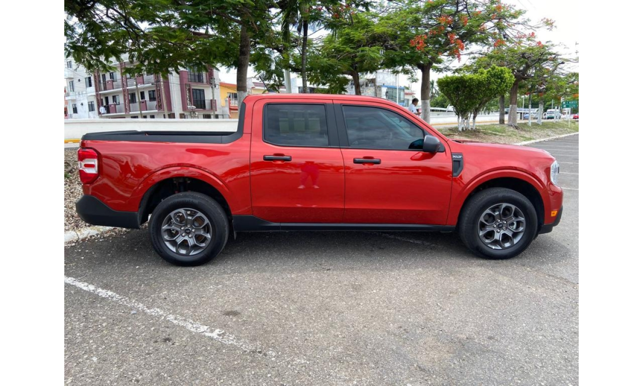 Maverick XLT FWD -Motor EcoBoost de 2.0 litros de 250 hp -Transmisión automática de ocho velocidades -Tracción delantera -Alerta de colisión frontal con freno autónomo de emergencia -Detección de peatones -Cámara de reversa -Control de velocidad crucero -Computadora de viaje con pantalla de 4.2" -Monitor de presión de neumáticos -7 bolsas de aire -Control electrónico de estabilidad -Suspensión trasera con barra de torsión 4 puertos USB de carga -Infotenimiento con pantalla táctil de 8" -Compatibilidad con Android Auto y Apple CarPlay -FordPass Connect con hot-spot de Wi-Fi -Botonera de acceso -SecureCode -Aire acondicionado -Espejos laterales negros -Sensor de luz -Rines de aluminio de 17" -Luces altas automáticas -Freno de estacionamiento eléctrico -Iluminación ambiental -Faros y calaveras de LED -Ganchos en el área de la caja