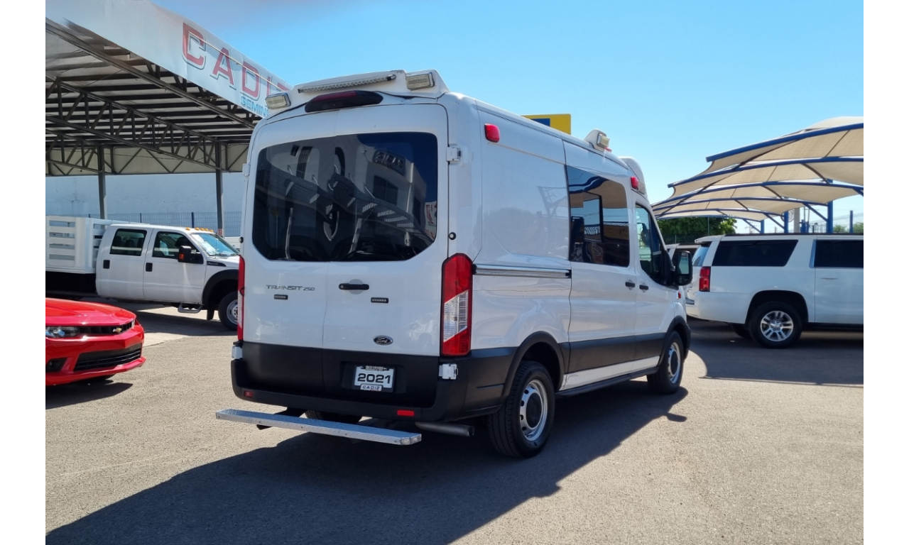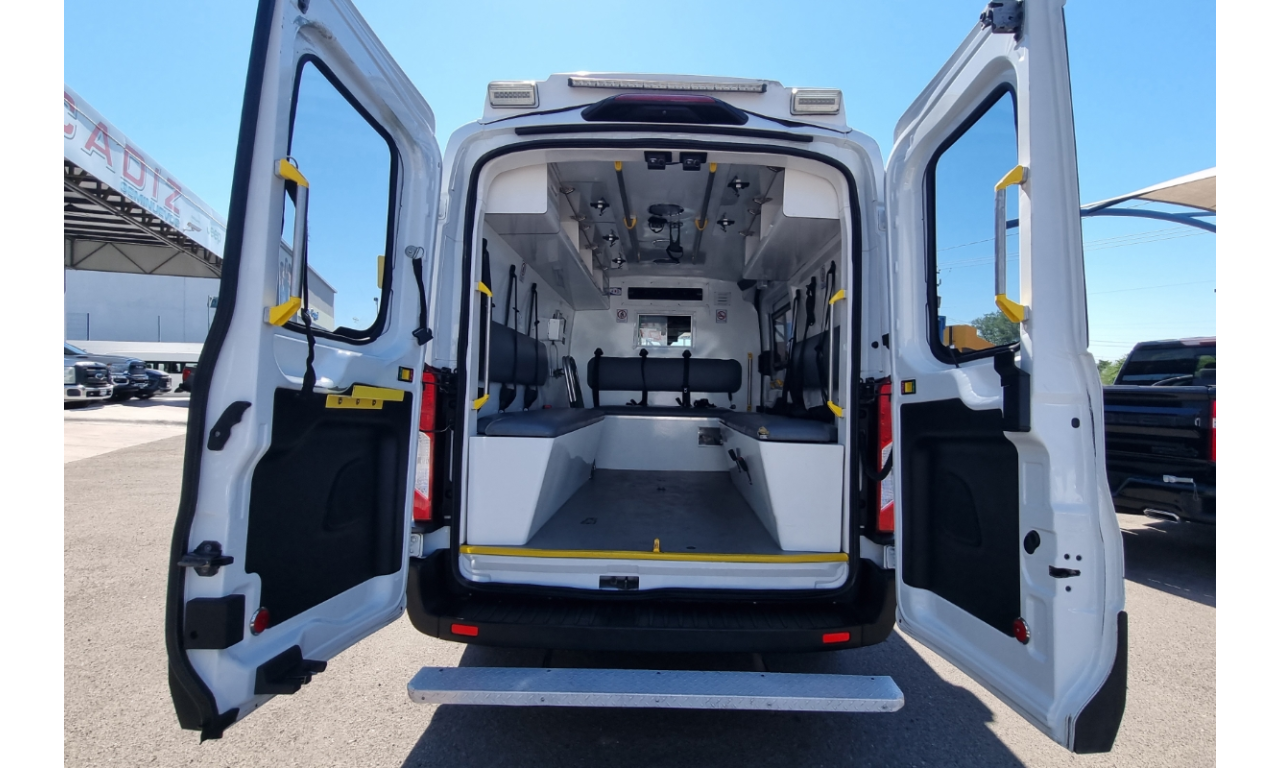 ? AMBULANCIA FORD TRANSIT 2021 TIPO 2 ✅ TRANSMISIÓN: AUTOMÁTICA ✅ COMBUSTIBLE: GASOLINA ✅ MOTOR: 3.5L V6 ✅ POTENCIA: 310 HP ✅ TORQUE: 400 LB-PIE ✅ CAPACIDAD DE PASAJEROS: 2 EN CABINA + 1 PACIENTE + 2 PARAMÉDICOS ? EQUIPAMIENTO MÉDICO TÍPICO: ✅CAMILLA ✅ASIENTOS PARA PARAMÉDICO CON CINTURÓN ✅MÓDULO ELÉCTRICO PARA ILUMINACIÓN Y SIRENAS ✅AIRE ACONDICIONADO DOBLE (CABINA Y ÁREA MÉDICA) ✅TOMA DE CORRIENTE ✅LÁMPARAS INTERIORES LED Y LUZ DE TRABAJO EXTERNA PRECIO: $888,000