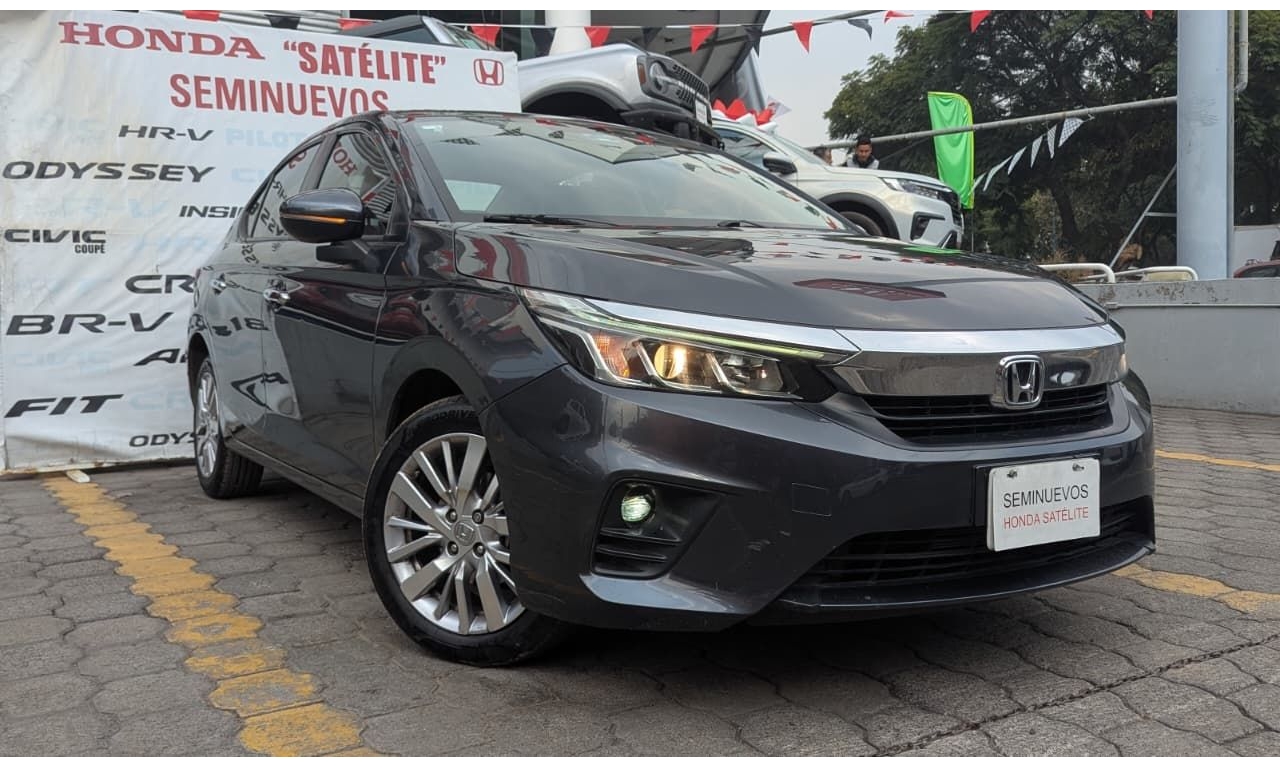 Honda City Prime 2022 en color Gris. Motor 1.5 Lt. Con 119 hp. Transmisión CVT y dirección asistida.