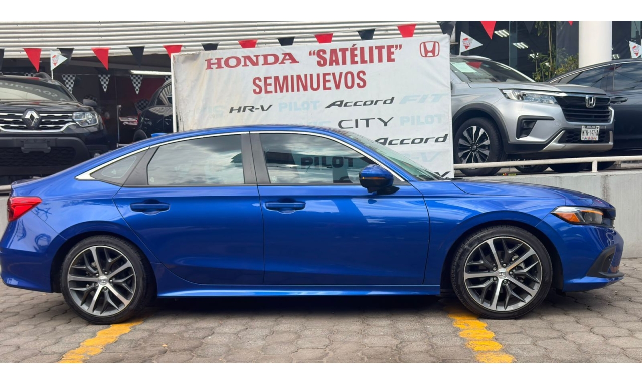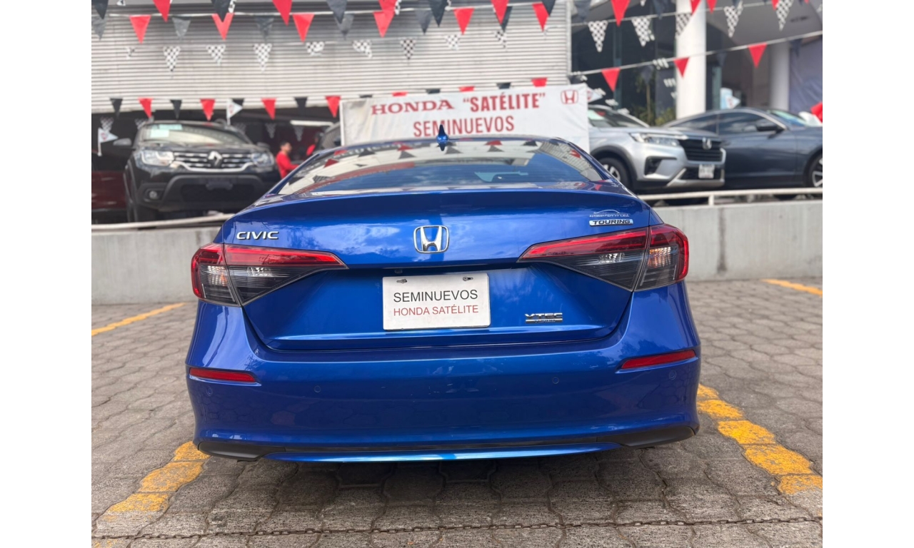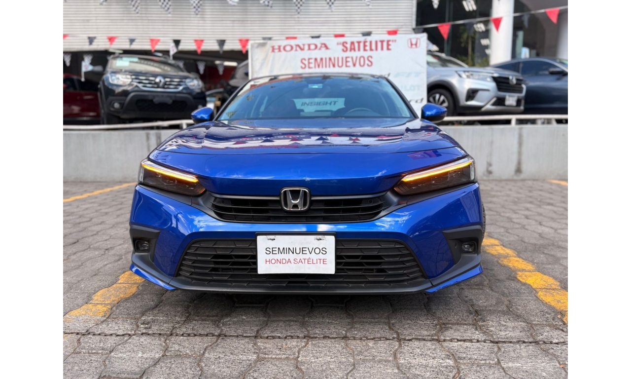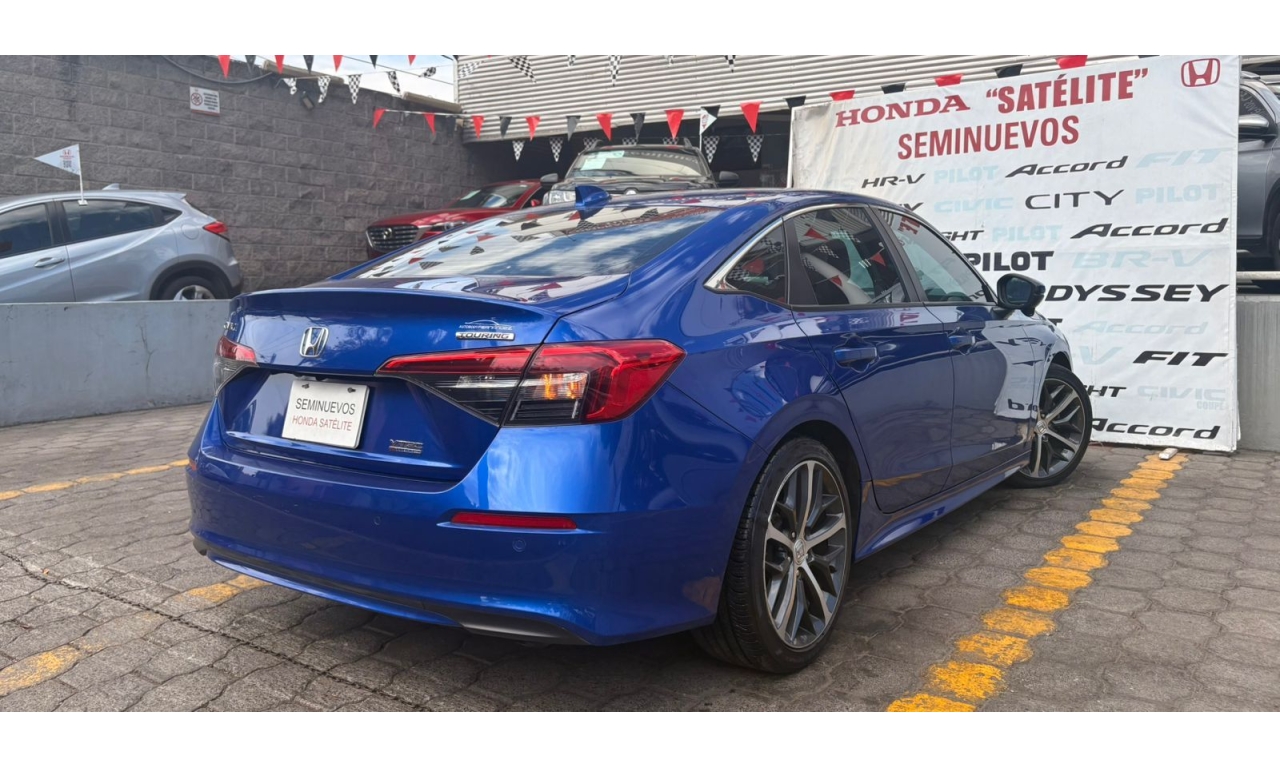 Honda Civic Touring HEV 2025 en color Azul. Motor 1.5 Lt. con 180Hp, transmisión CVT y dirección asistida.