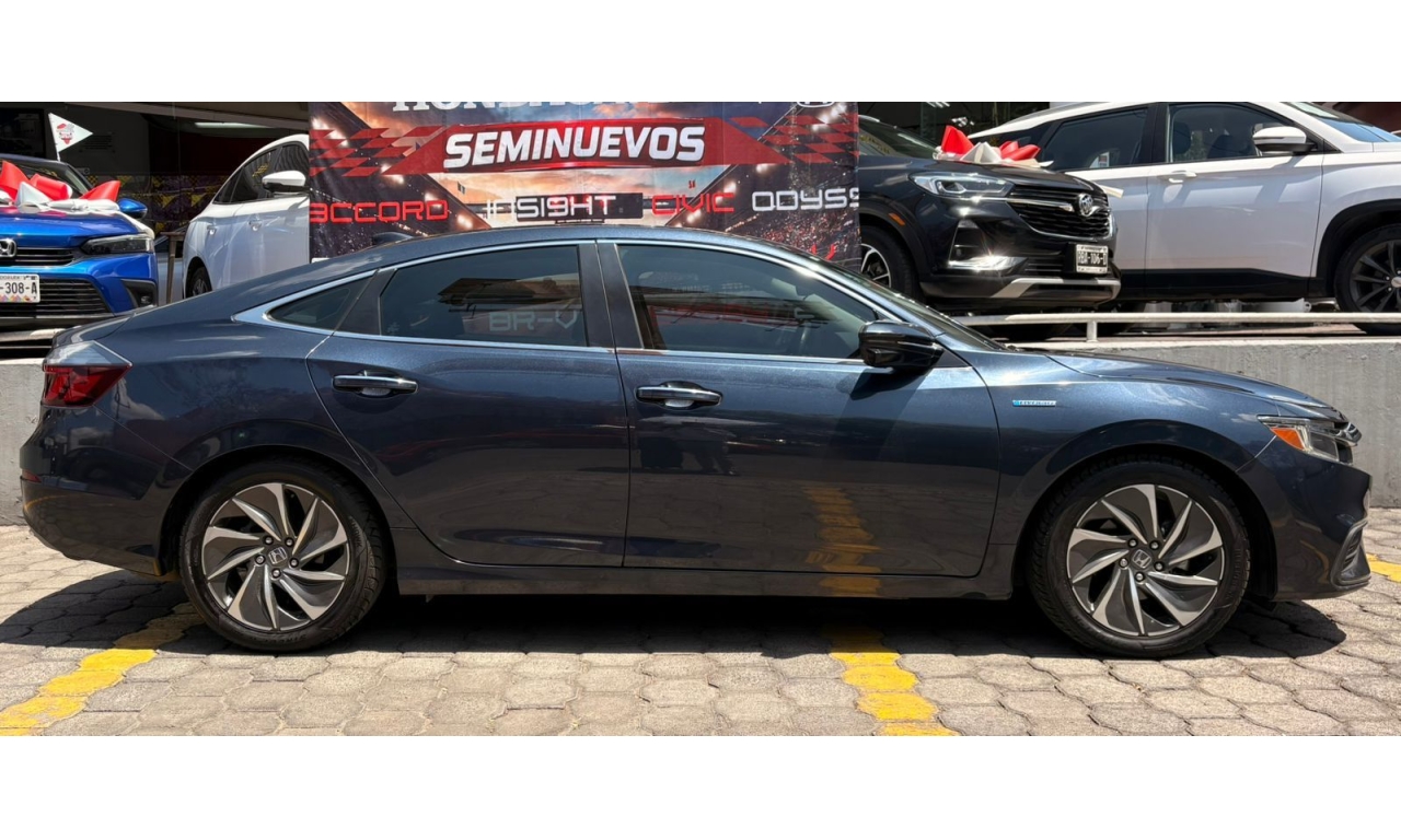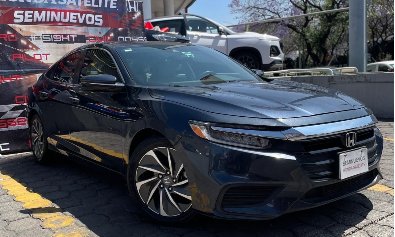HONDA INSIGTH 2022- Color Azul Motor: 1.5 Potencia: 107 Hp Es un sedán híbrido diseñado para ahorrar gasolina y ofrecer manejo cómodo. Combina un motor de gasolina 1.5 L con un motor eléctrico para mejorar eficiencia y potencia. Transmisión: automática E-CVT Pantalla táctil con Apple CarPlay y Android Auto Cámara de reversa Control crucero adaptativo Asientos Quemacocos Sonido premium