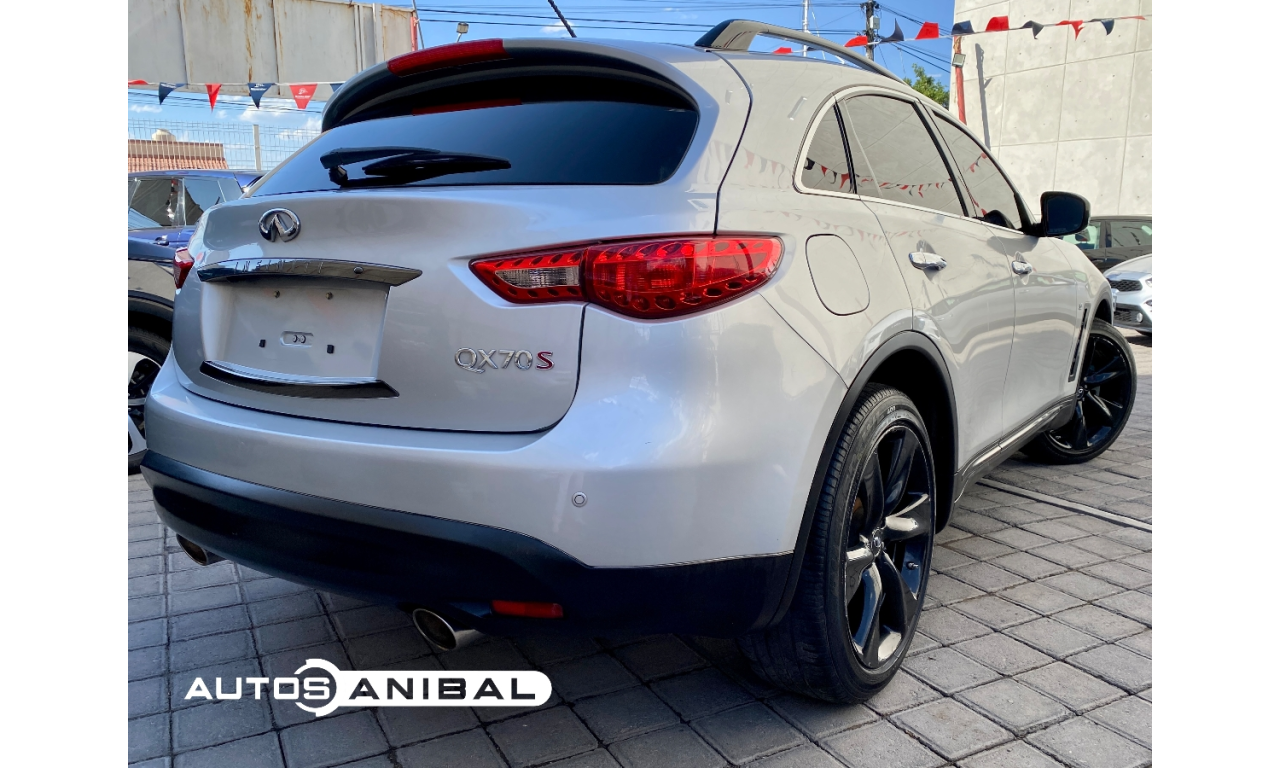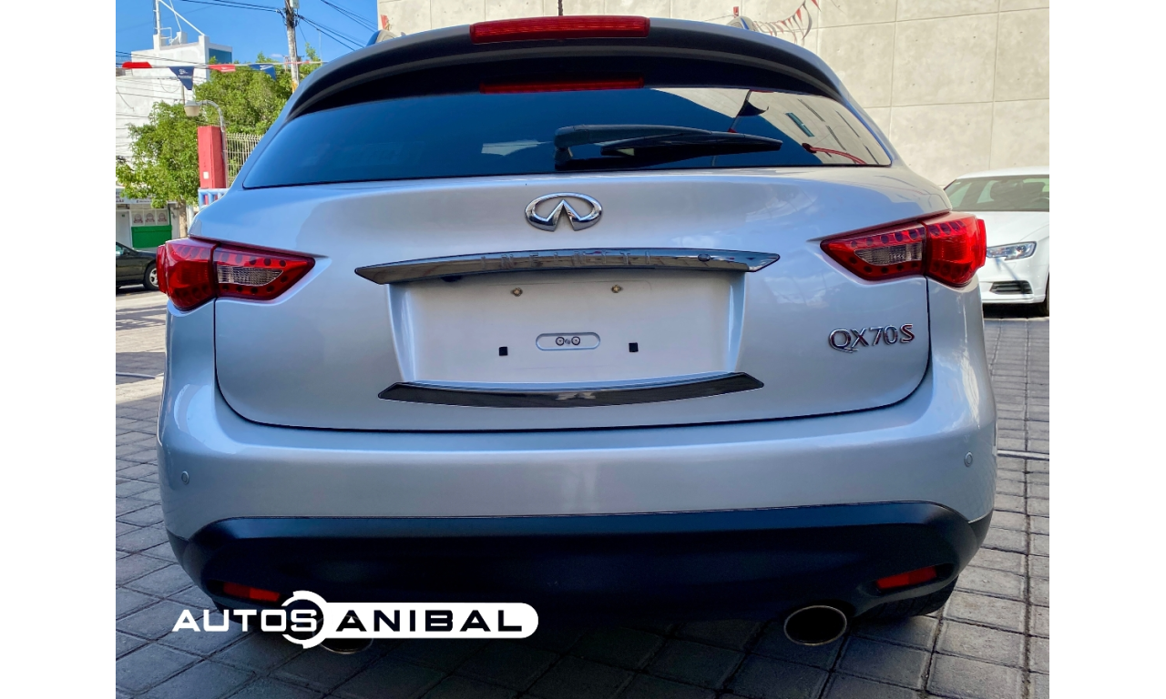 INFINITI QX70 3.7 SPORT 2015 - $315,000 - 83,000 KM - Transmisión automática de 7 velocidades - Tracción trasera - Advertencia de abandono de carril (LDW) y prevención de abandono de carril (LDP) - Aviso para cinturones de seguridad delanteros - Camara de visión trasera - Cámara de visión periférica - Faros LED y faros antiniebla LED - Infiniti Drive Mode Selector - Reloj analógico Infiniti - Sensores de aparcamiento delantero y trasero - Acceso y puesta en marcha inteligente (I-Key) - Climatizador de dos zonas con salidas de aire traseras - Paragolpes diseño Sport - Pedales y reposapies de aluminio - Tapiceria de cuero - Volante con calefacción - Volante y palanca de cambio en cuero - Sistema de audio BT, USB, Aux, FM y AM - Bose Premium Sound con decodificación de 5.1 canales, dieciséis altavoces y tecnología Engine Harmonic Cancellation - Infiniti Music Box de 10 Gb con base de datos musical Gracenote - Navegación 30 GB HDD - Pantalla táctil central con Infiniti Controller - Reconocimiento de voz