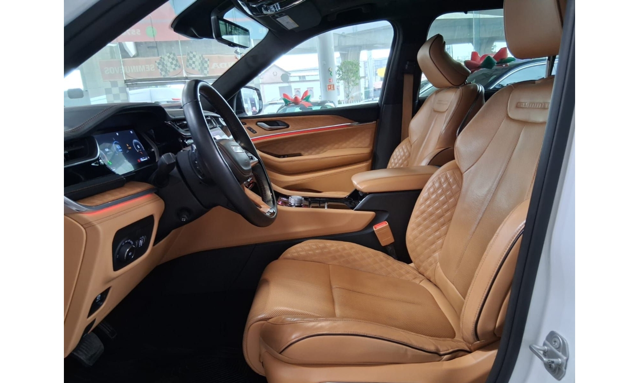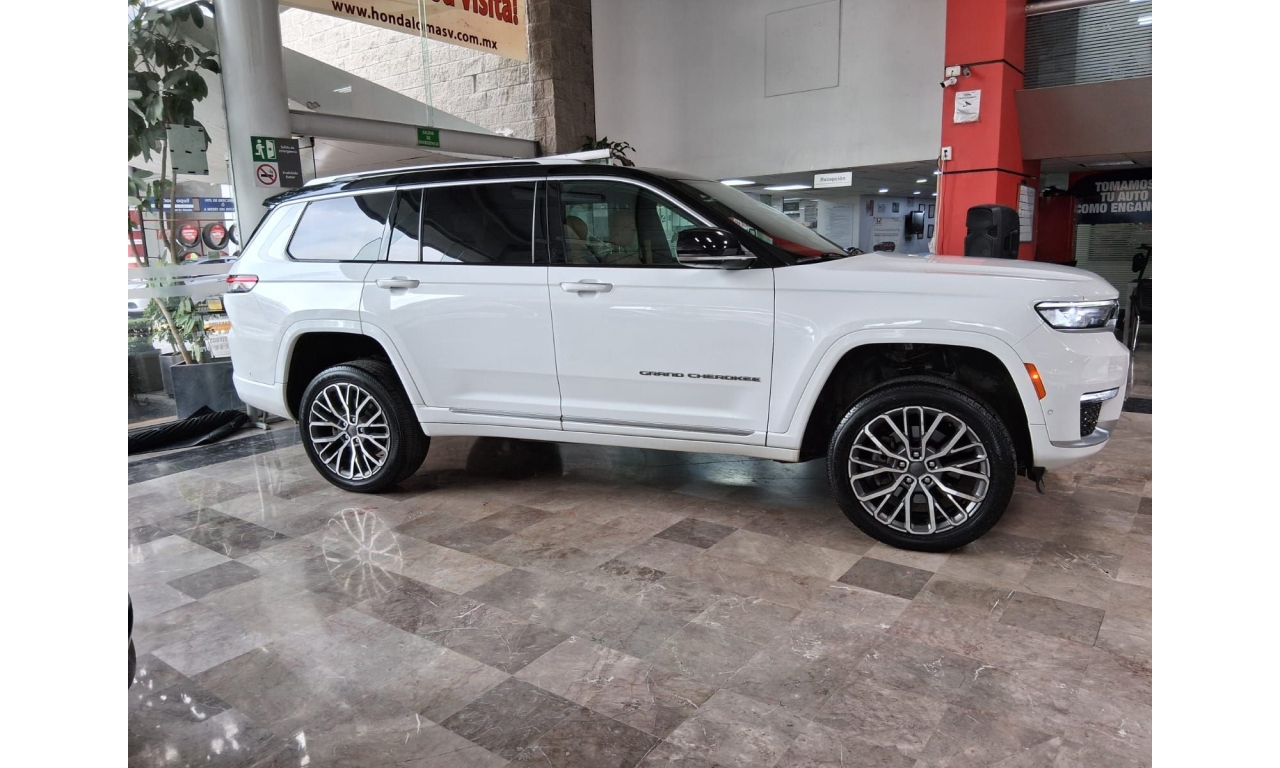 Aprovecha a estrenar con nosotros tu Jeep Grand Cherokee 2022 5.7 V8 L Summit 4x4 At con solo 64,739km vidrios eléctricos, color blanco e interiores en color marron , radio AM/FM , controles al volante, aire acondicionado, porta vasos, airbag en conductor y cristales electricos.