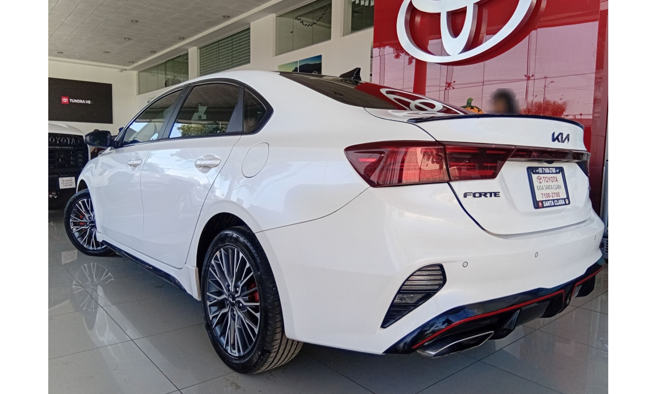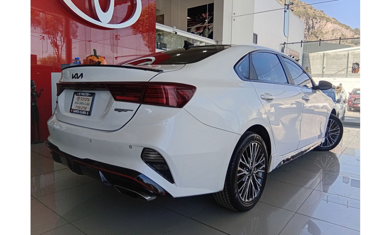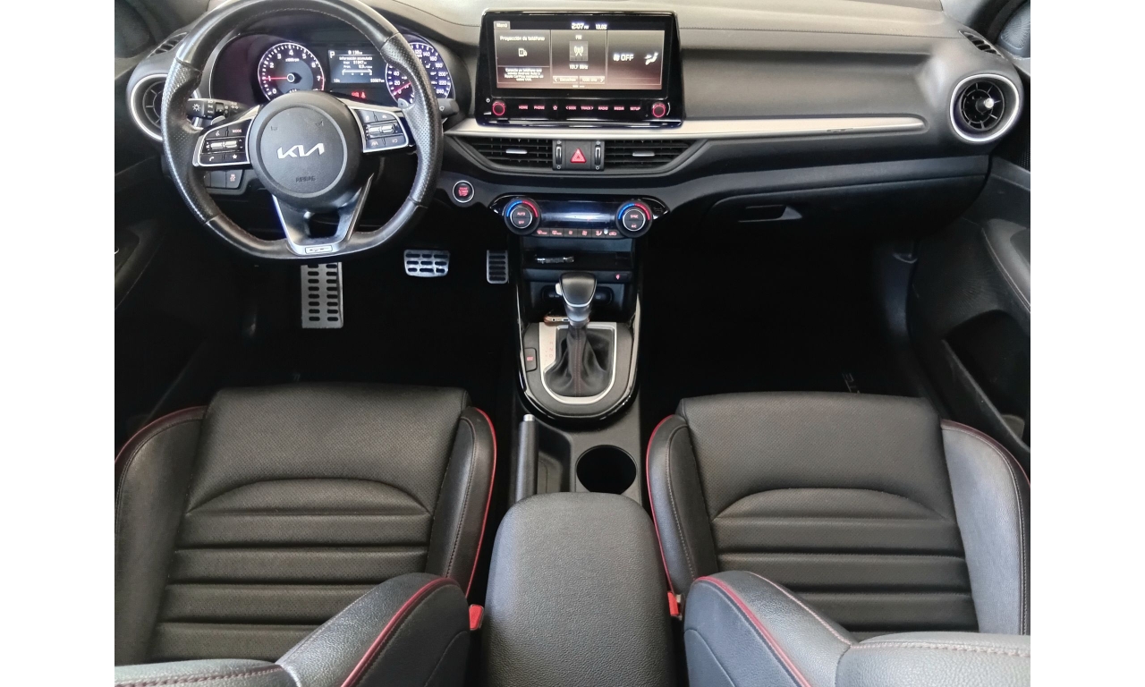 El Kia Forte GT Line incluye un motor de 2.0 L con 147 hp, transmisión automática IVT, ofrece pantalla táctil de 10.25 pulgadas con Apple CarPlay y Android Auto, asientos en piel, quemacocos y cargador inalámbrico. Incluye seis bolsas de aire, frenos ABS, control electrónico de estabilidad y varios asistentes de seguridad.