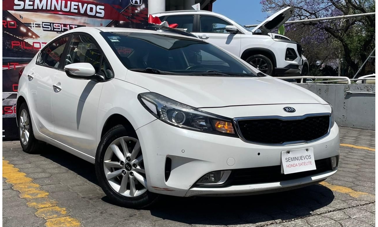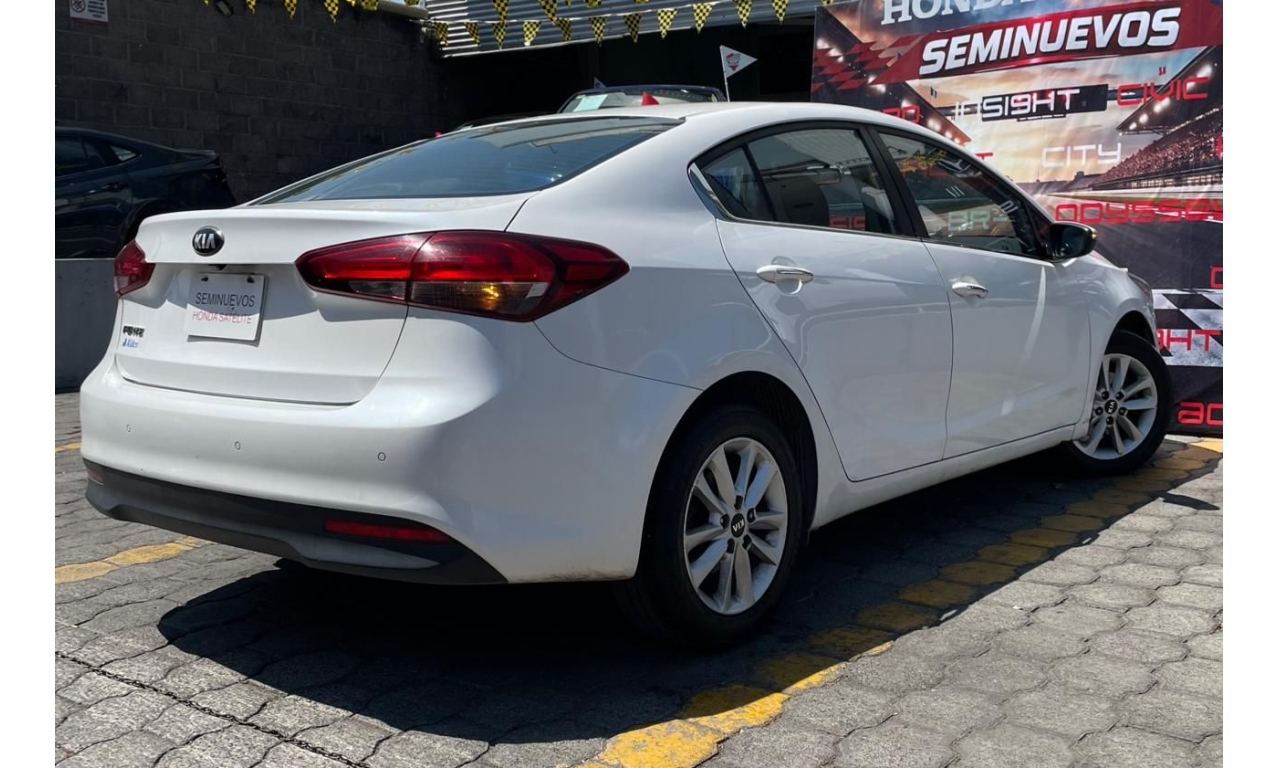 Kia Forte EX TM 2018 en color blanco. Un sedán que combina diseño moderno, eficiencia y comodidad para el día a día. Equipa motor 2.0L con transmisión manual, ofreciendo un manejo ágil y un excelente rendimiento tanto en ciudad como en carretera.