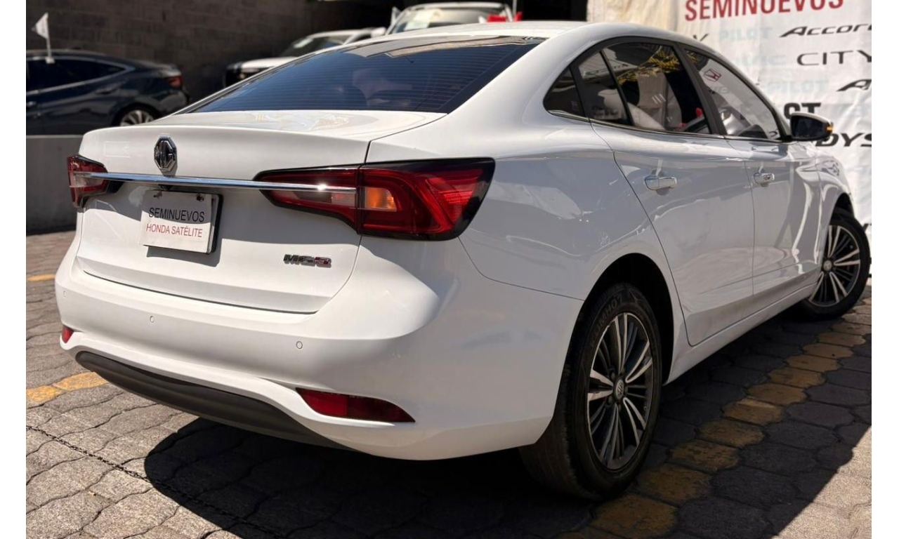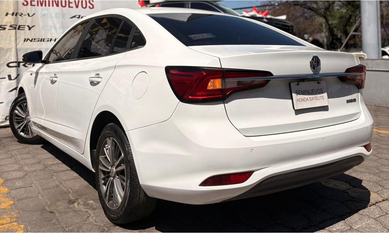 MG 5 Elegance en color Blanco, Motor 1.5 Lt. Con 113 Hp, transmisión manual y dirección asistida.