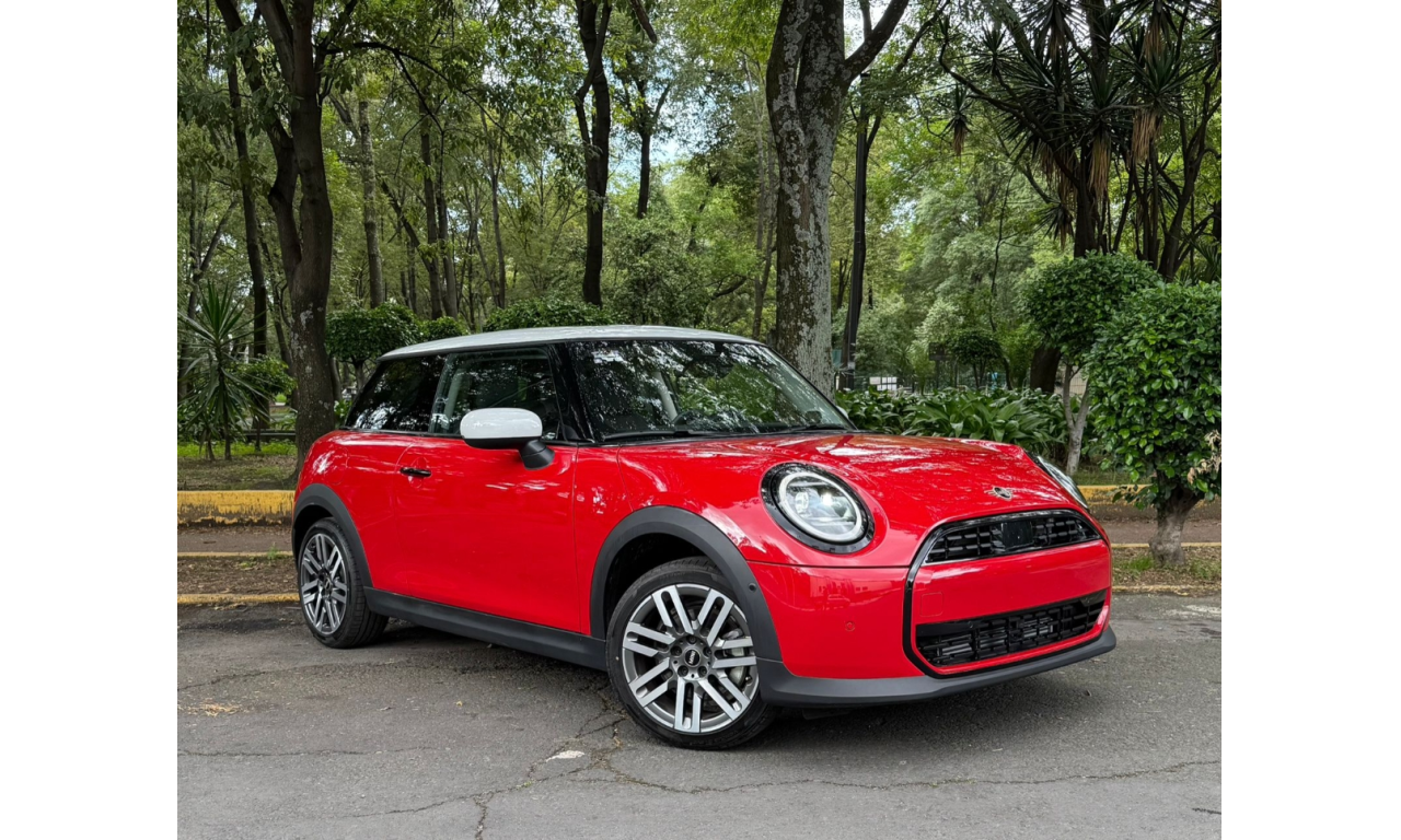 El MINI Cooper C 3 Puertas 2025 cuenta con un motor de 1.5 litros y 3 cilindros que ofrece 156 caballos de fuerza (hp) y 230 Nm de torque, con una aceleración de 0 a 100 km/h en 7.7 segundos y una velocidad máxima de 225 km/h. Su transmisión es automática de doble embrague de siete velocidades y ofrece tracción delantera. El vehículo incluye faros y calaveras LED con diseño Union Jack, pantalla central OLED, y se ofrecen diferentes colores para el toldo, cofre y retrovisores.