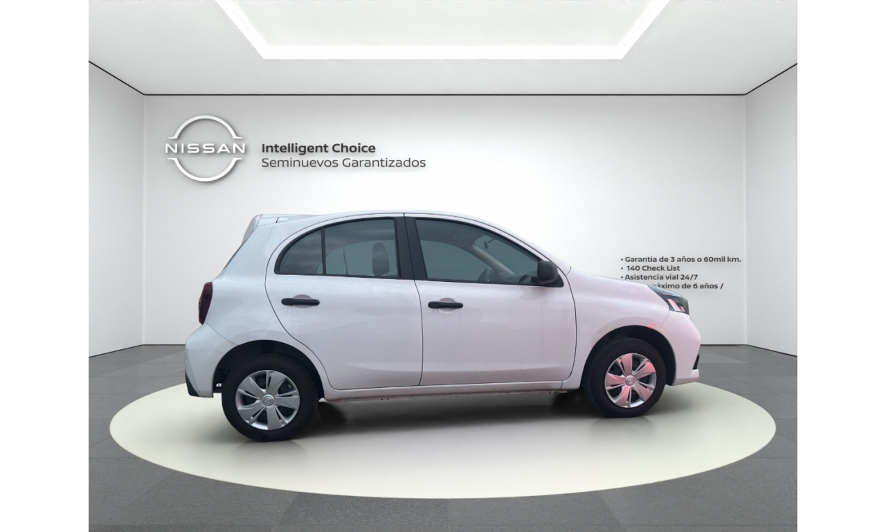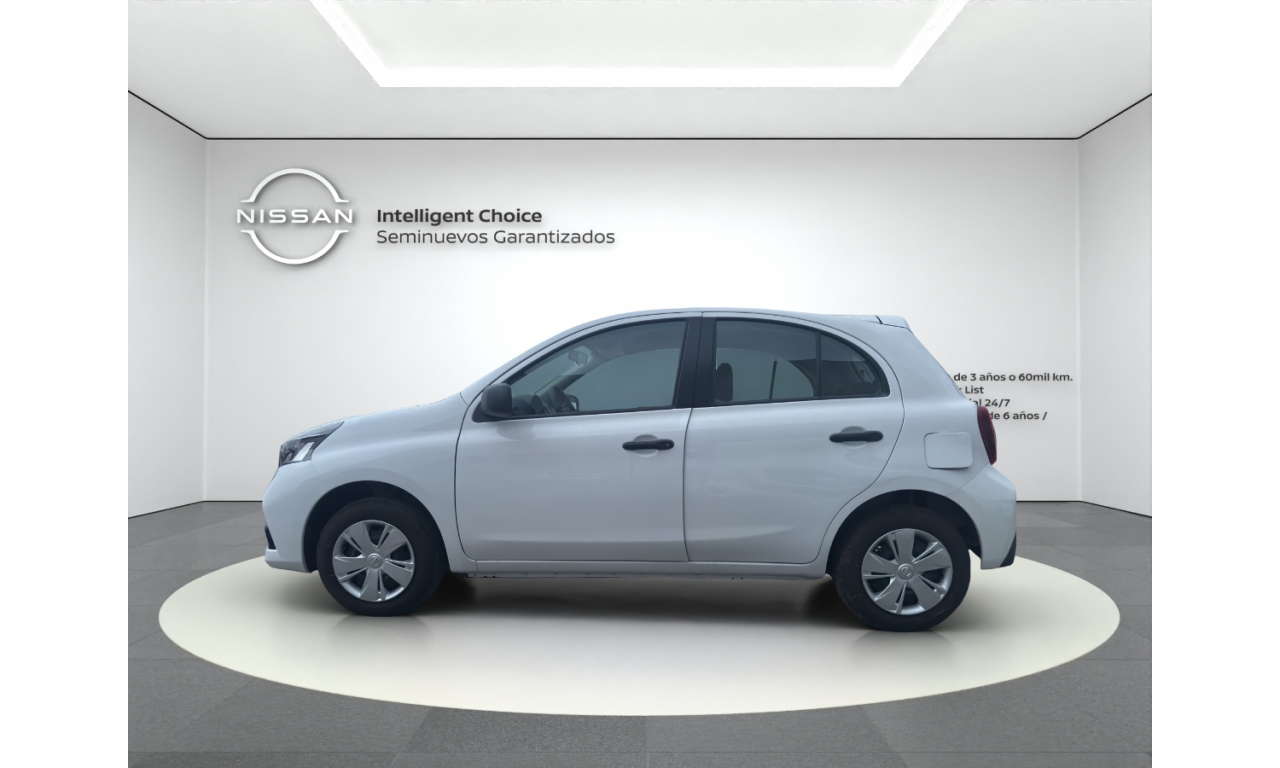 El Nissan March Sense 2025 es un hatchback subcompacto urbano, destacado por su motor 1.6L de 106 hp y alta seguridad de serie (6 bolsas de aire). Cuenta con transmisión manual de 5 velocidades frenos ABS+EBD+BA, control de tracción/estabilidad, rines de acero 14" con tapones, aire acondicionado y faros con Signature Lamps LED