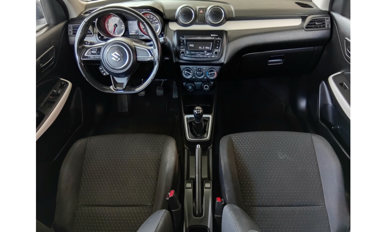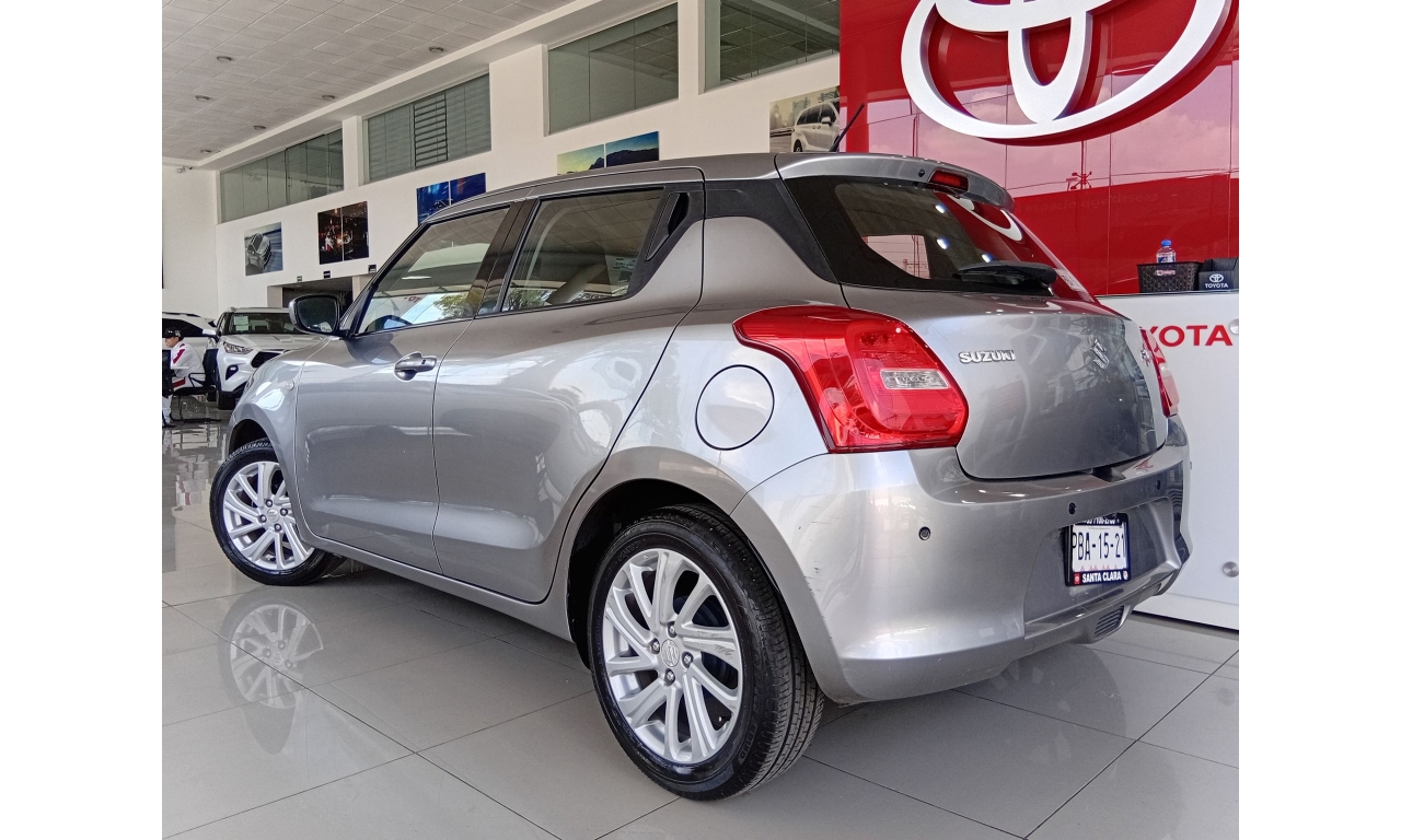 El Suzuki Swift 2021, es un hatchback subcompacto, motor 1.2 litros de 4 cilindros, faros halógenos con exploradoras (niebla) y tercer stop tipo LED, rines de aluminio de 16 pulgadas, sistema de audio con controles al volante, Bluetooth, USB y entrada auxiliar.