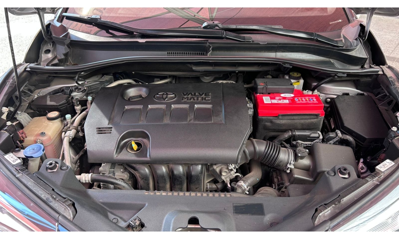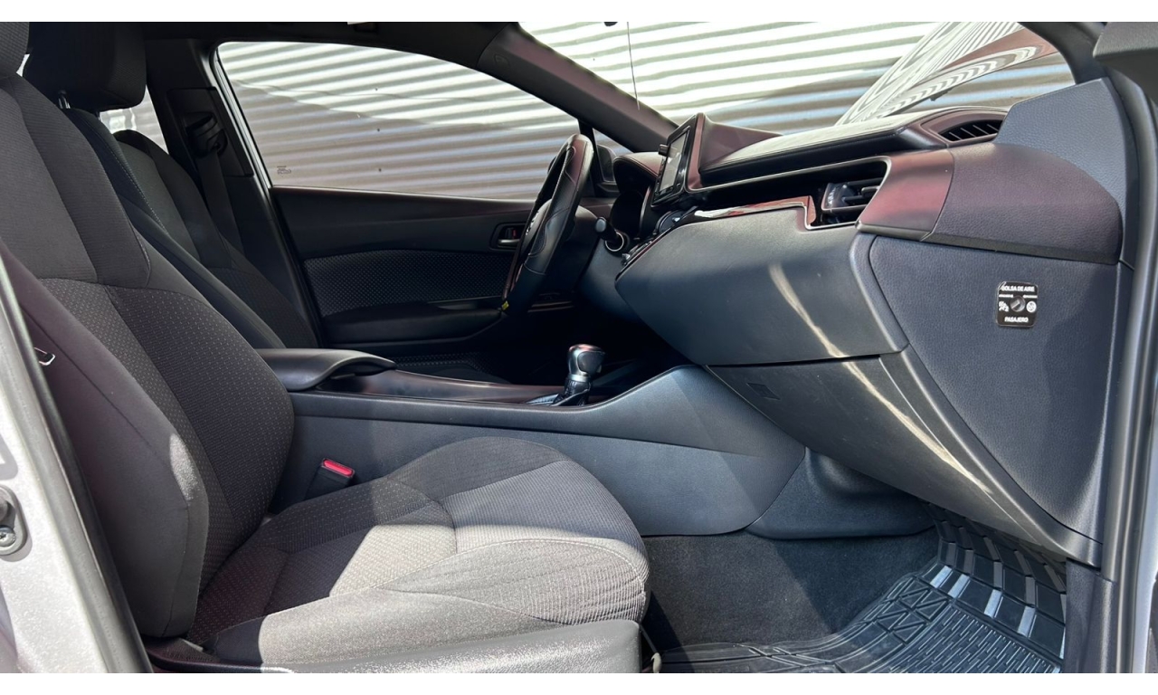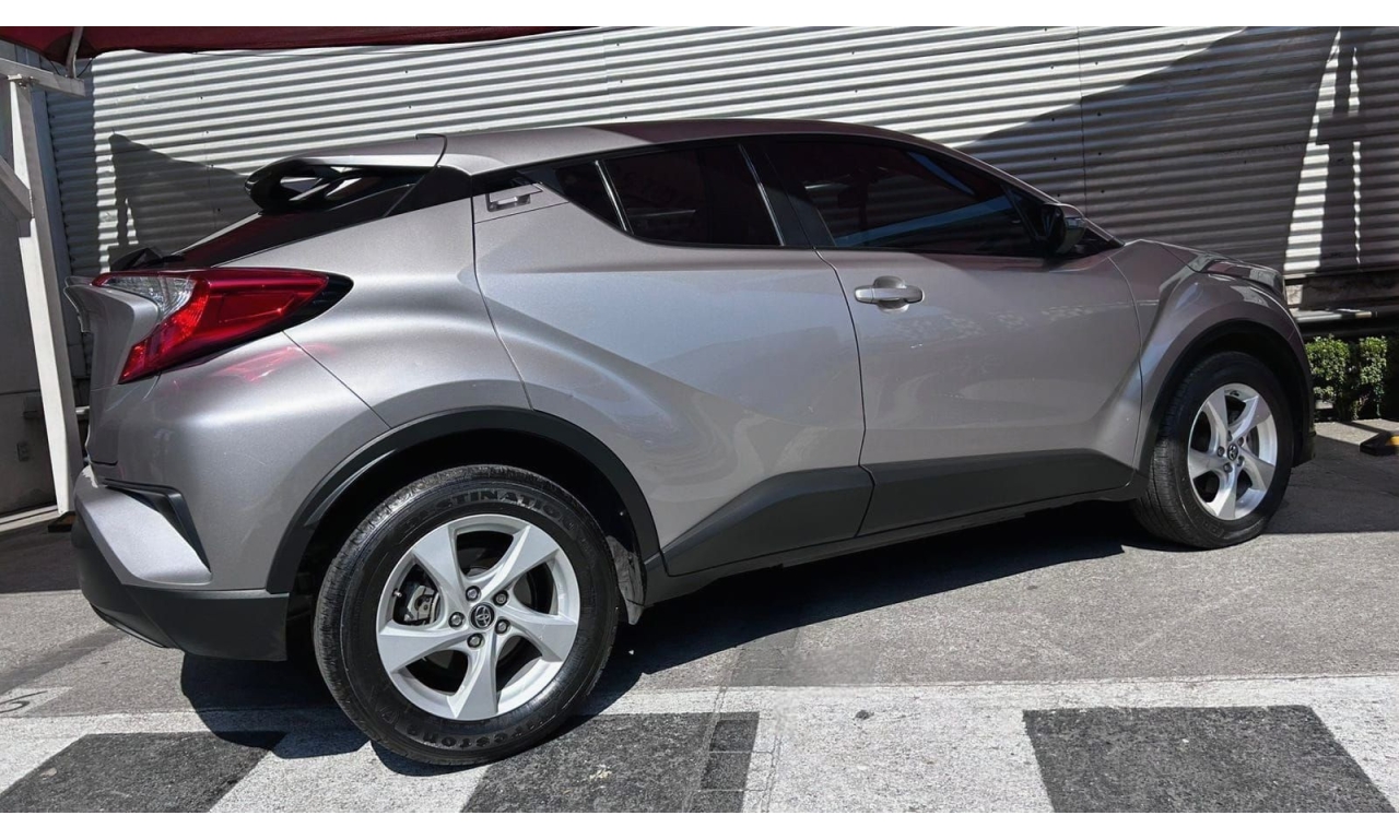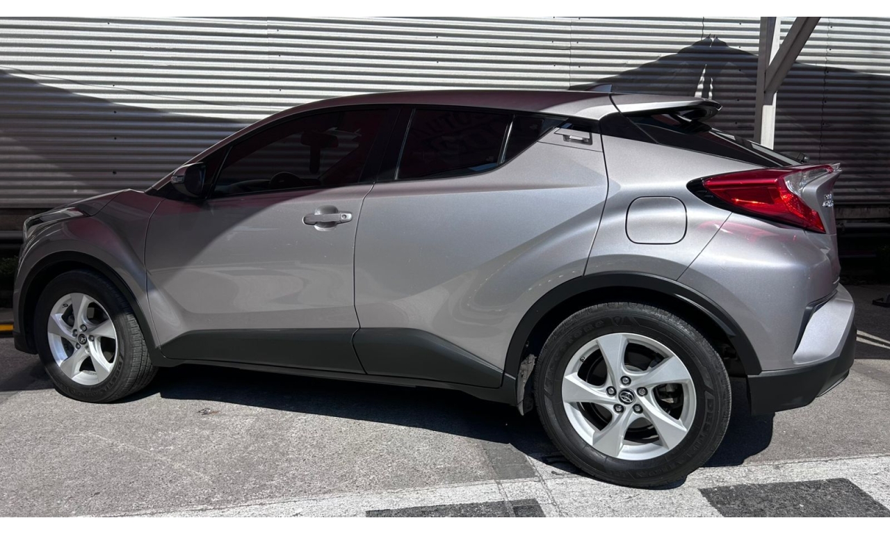 CH-R - 2019 -Motor y desempeño: Motor de 4 cilindros y 2.0 litros con 148 hp. Transmisión CVT de 7 velocidades simuladas. Tracción delantera en su versión base. Modos de manejo Normal, Eco y Sport. -Diseño: Es un SUV compacto con silueta tipo coupé. El diseño exterior es atrevido e inspirado en la forma de un diamante. -Interior: Acabados de tela en la versión base. Incluye un volante multifunción. -Tecnología: Dependiendo de la versión y el mercado, puede incluir aire acondicionado automático y cámara de respaldo trasera. El sistema multimedia suele incluir Bluetooth. -Dimensiones: Aproximadamente 4.36 metros de largo y 1.55 metros de alto. -Capacidad de carga: Maletero de 297 litros, que aumenta al abatir los asientos traseros. -Seguridad: Se puede equipar con la cámara de respaldo trasera, aunque los monitores de punto ciego con alerta de tráfico cruzado trasero suelen ser opcionales y vienen en versiones superiores.