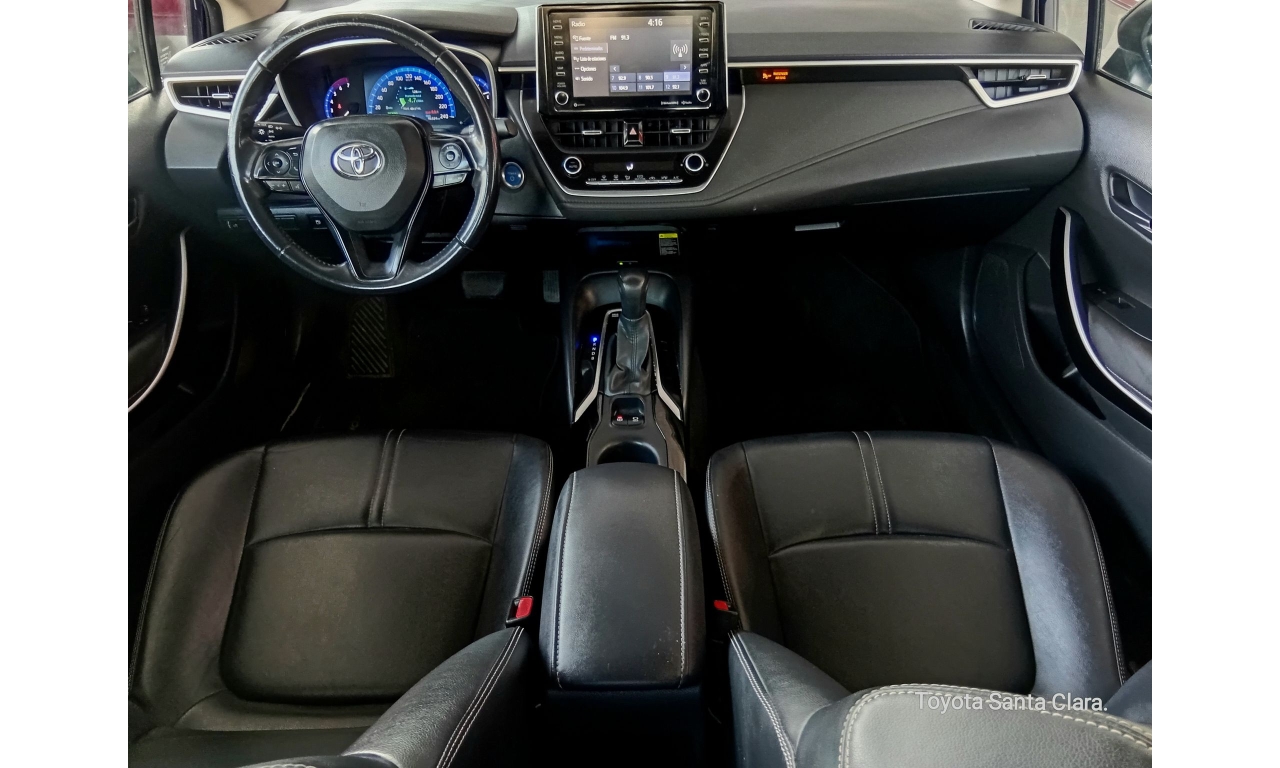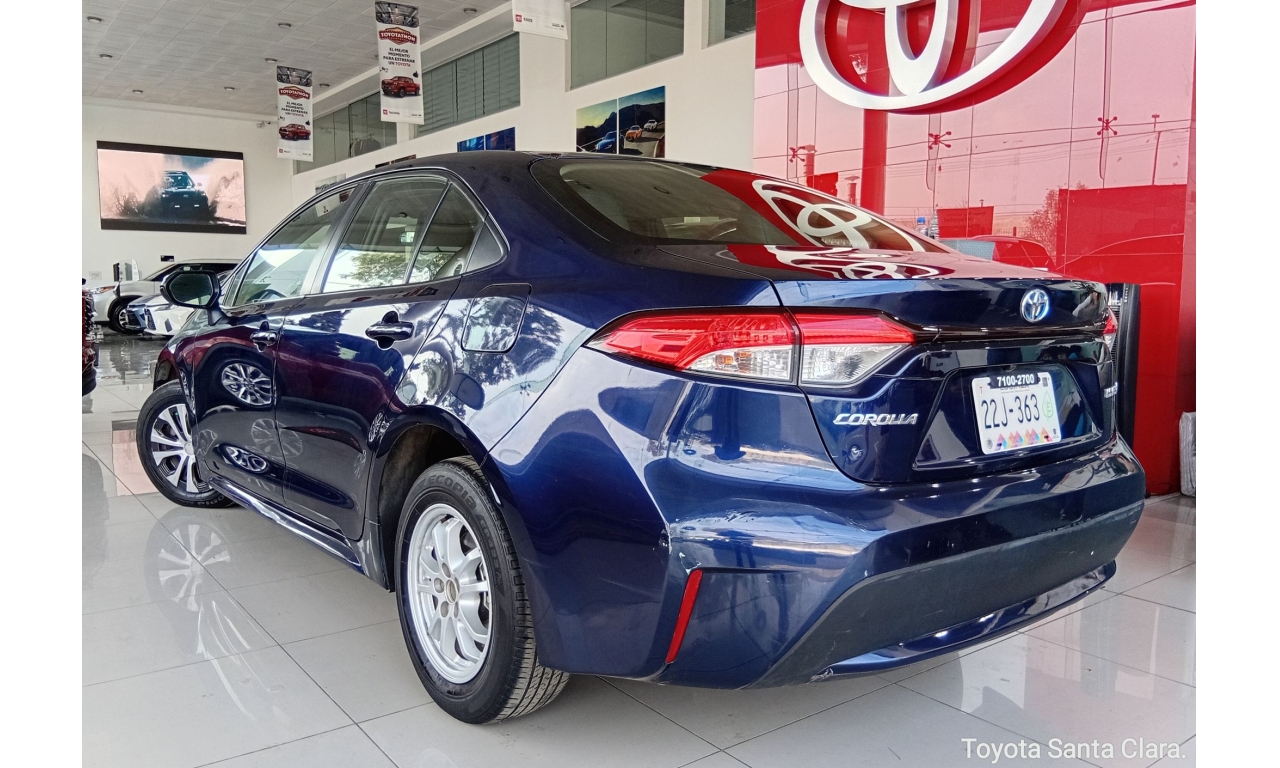 El Toyota Corolla LE se caracteriza por su eficiencia híbrida autorecargable (1.8L + motor eléctrico, ~121 HP), motor de 4 cilindros, excelente consumo (más de 29 km/L), transmisión automática E-CVT, conectividad Android Auto/Apple CarPlay, 7 bolsas de aire (frontales, laterales, de cortina y de rodilla para conductor), y sistemas de seguridad como el Star Safety System (ABS, BA, VSC, HAC), todo bajo la plataforma TNGA para mayor seguridad y manejo.