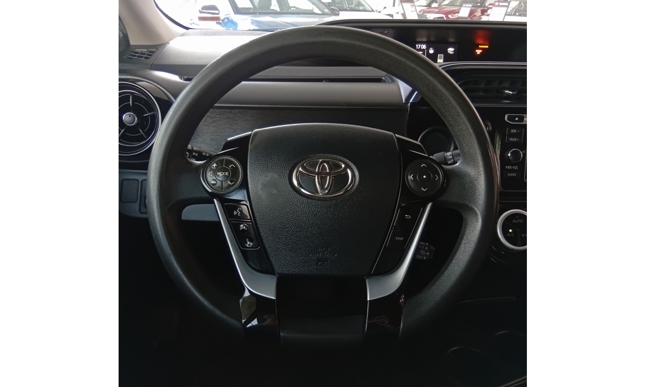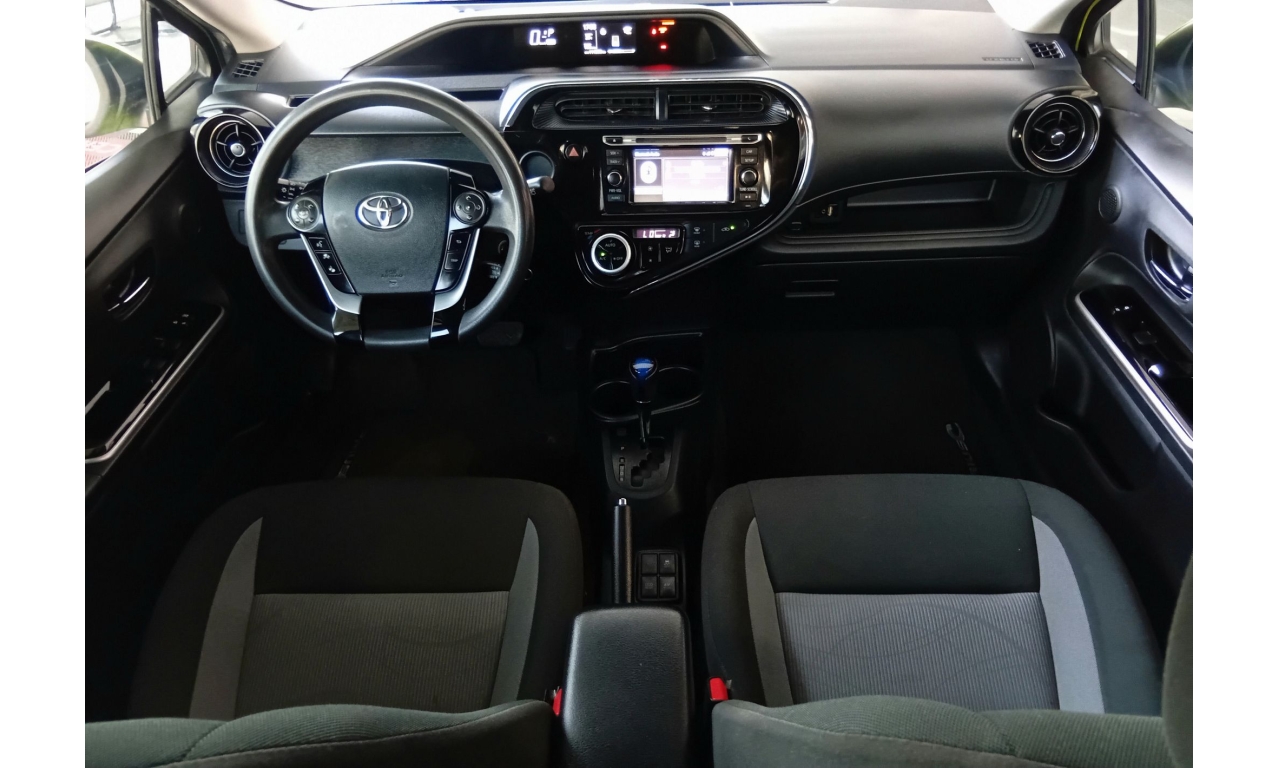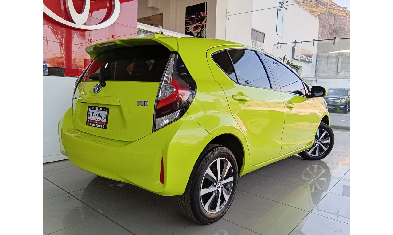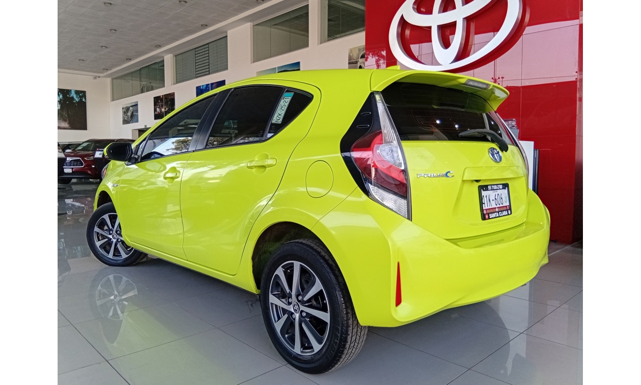 El Toyota Prius C es un vehículo híbrido con un motor de 1.5 litros y 99 caballos de fuerza, alcanzando hasta 3.7 litros por cada 100 km, con una autonomía combinada de hasta 978 km, nueve airbags para mayor seguridad, cámara de reversa y un sistema de infoentretenimiento con pantalla táctil, conectividad Bluetooth y sistema de sonido.