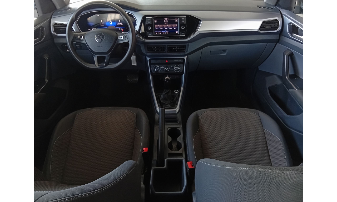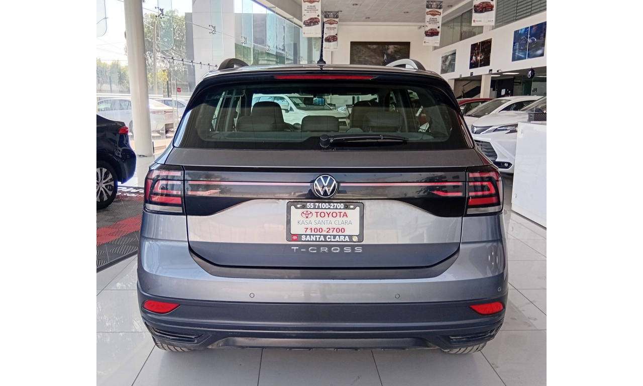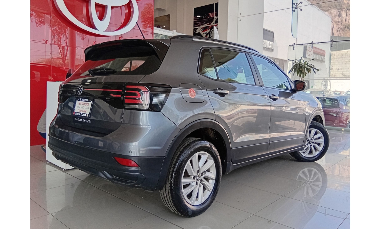 El Volkswagen T-Cross es un SUV compacto con motor de 1.6L, 4 cilindros (110 HP), transmisión automática Tiptronic de 6 velocidades, con 6 bolsas de aire, control de estabilidad (ESC) y frenos ABS, además de características como sistema de infoentretenimiento, cámara de reversa.