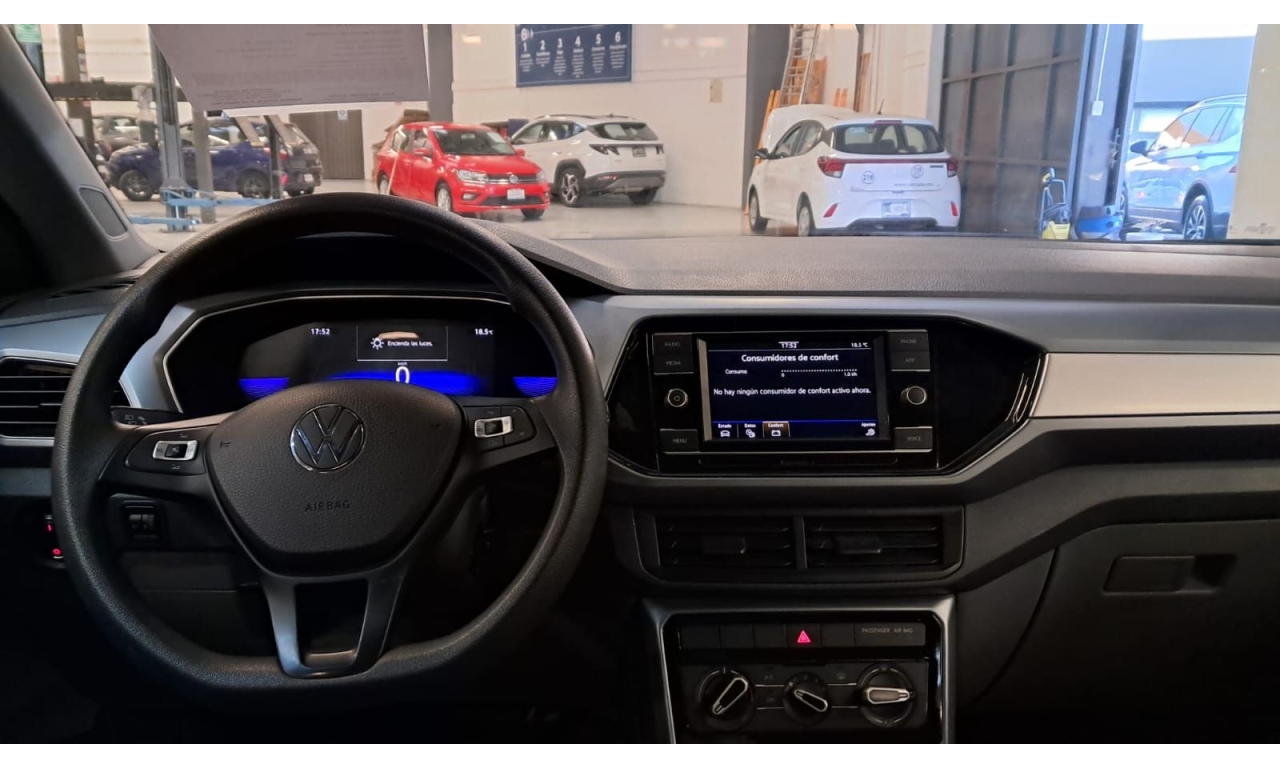 VOLKSWAGEN T-CROSS TRENDLINE 2023 -MOTOR 1.6 -VESTIDURAS DE TELA -SENSORES DE REVERSA ¡Seminuevos Hyundai Satélite! Somos Multimarca. ¡No te arriesgues! En Hyundai Satélite, tu inversión está segura Todo nuestro inventario esta garantizado por parte de el Distribuidor. Contamos con atractivos planes de financiamiento desde el 30% de enganche y plazos muy cómodos, dependiendo modelo y año de la unidad. Contáctanos para que conozcas nuestra amplia gama de vehículos.