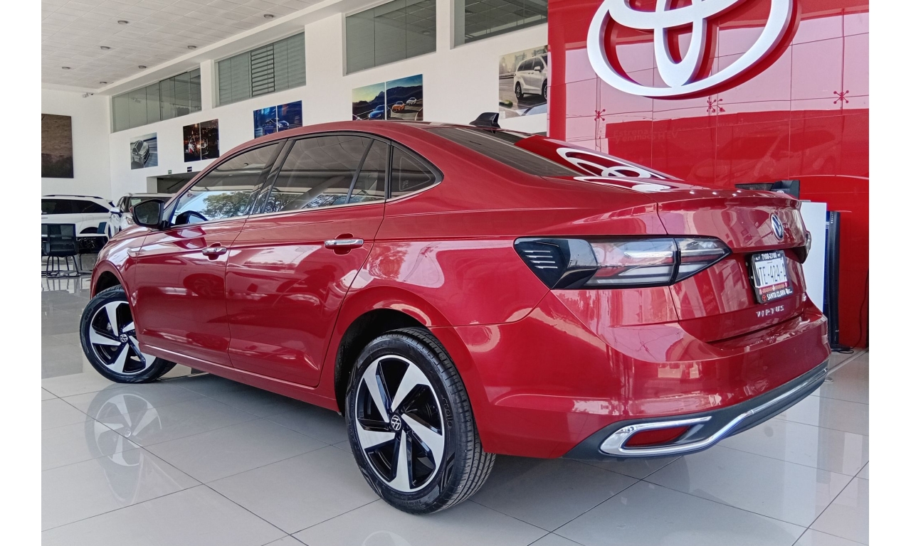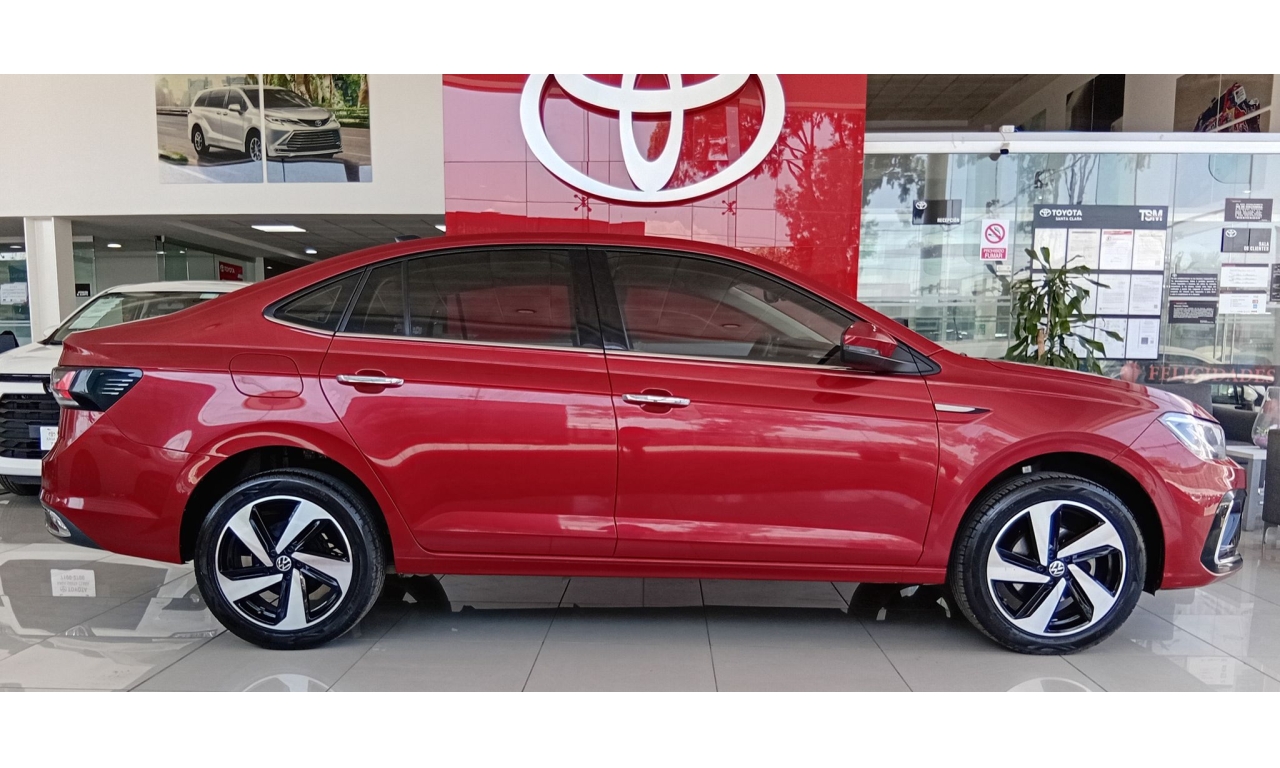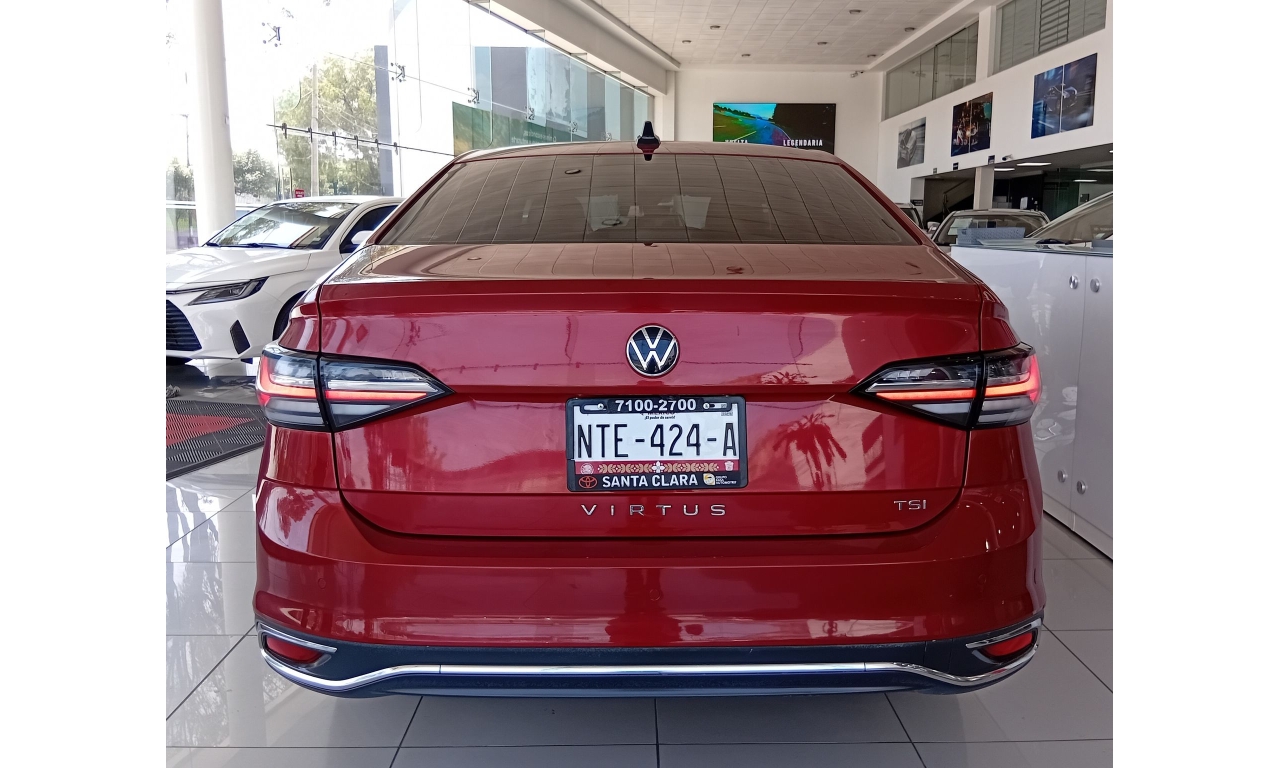 El Volkswagen Virtus 2024 Highline es un sedán, equipado con un motor 3 cilindros 1.0L TSI. Rines de aluminio de 17 pulgadas, faros principales y calaveras con tecnología LED, luces de niebla con función de curva y quemacocos. Incluye 6 bolsas de aire (2 frontales, 2 laterales, 2 tipo cortina), control crucero adaptativo (ACC), asistente de colisión frontal con freno de emergencia y cámara de visión trasera.